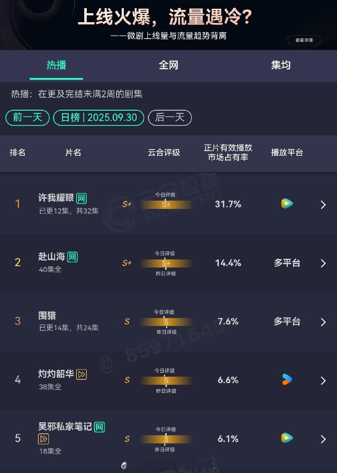 赵露思、陈伟霆的许我耀眼 五天干进年榜,预估6100w,是第二名赴山海 差不多两倍