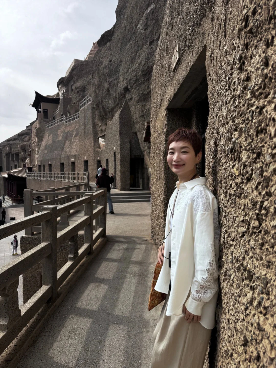 前《ELLE》主编晓雪和李娜一起游览莫高窟