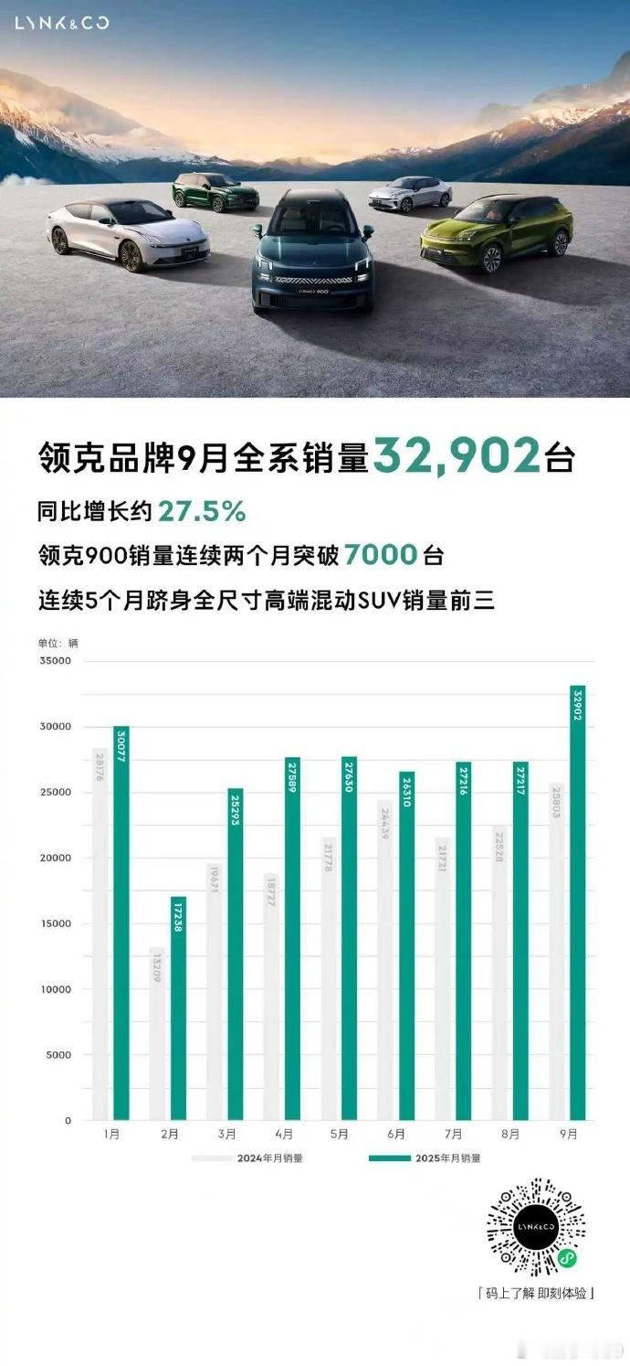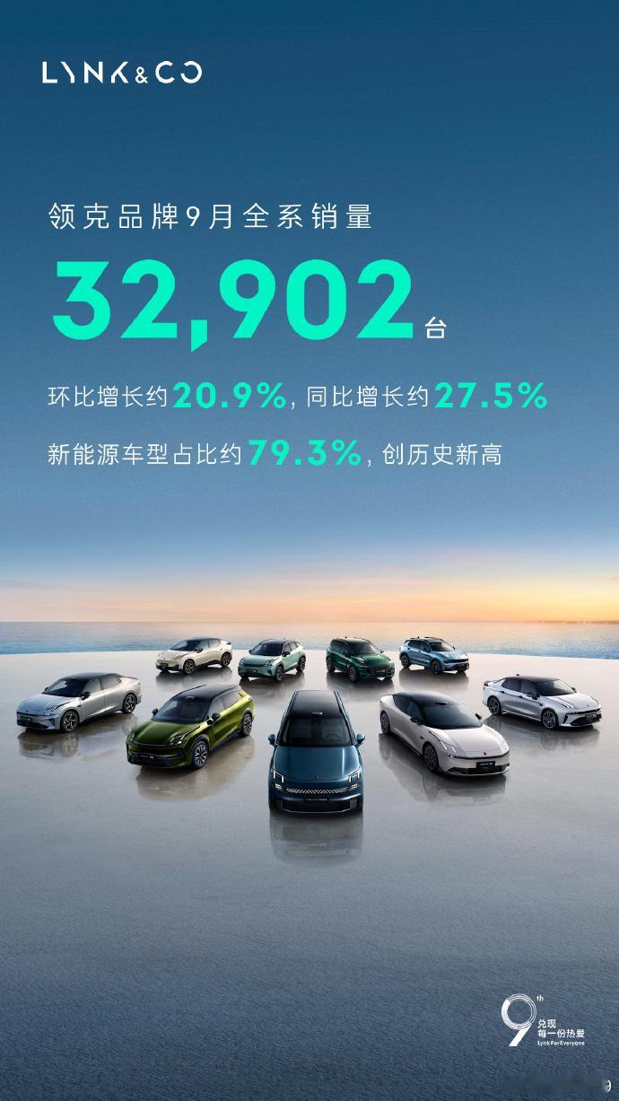 领克9月销量32902辆,同比增长27.5%