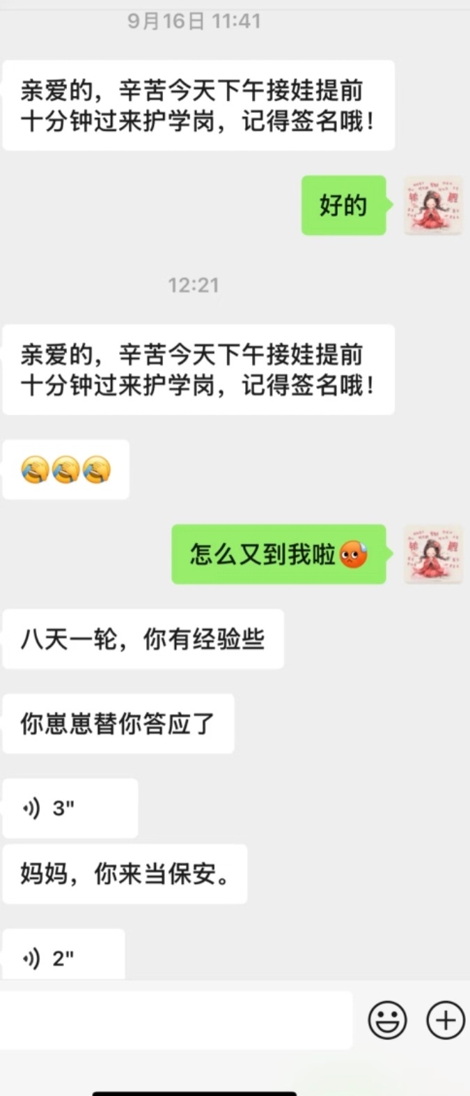 从不参加这些护学岗,学校本来就有保安,学校附近还有警亭