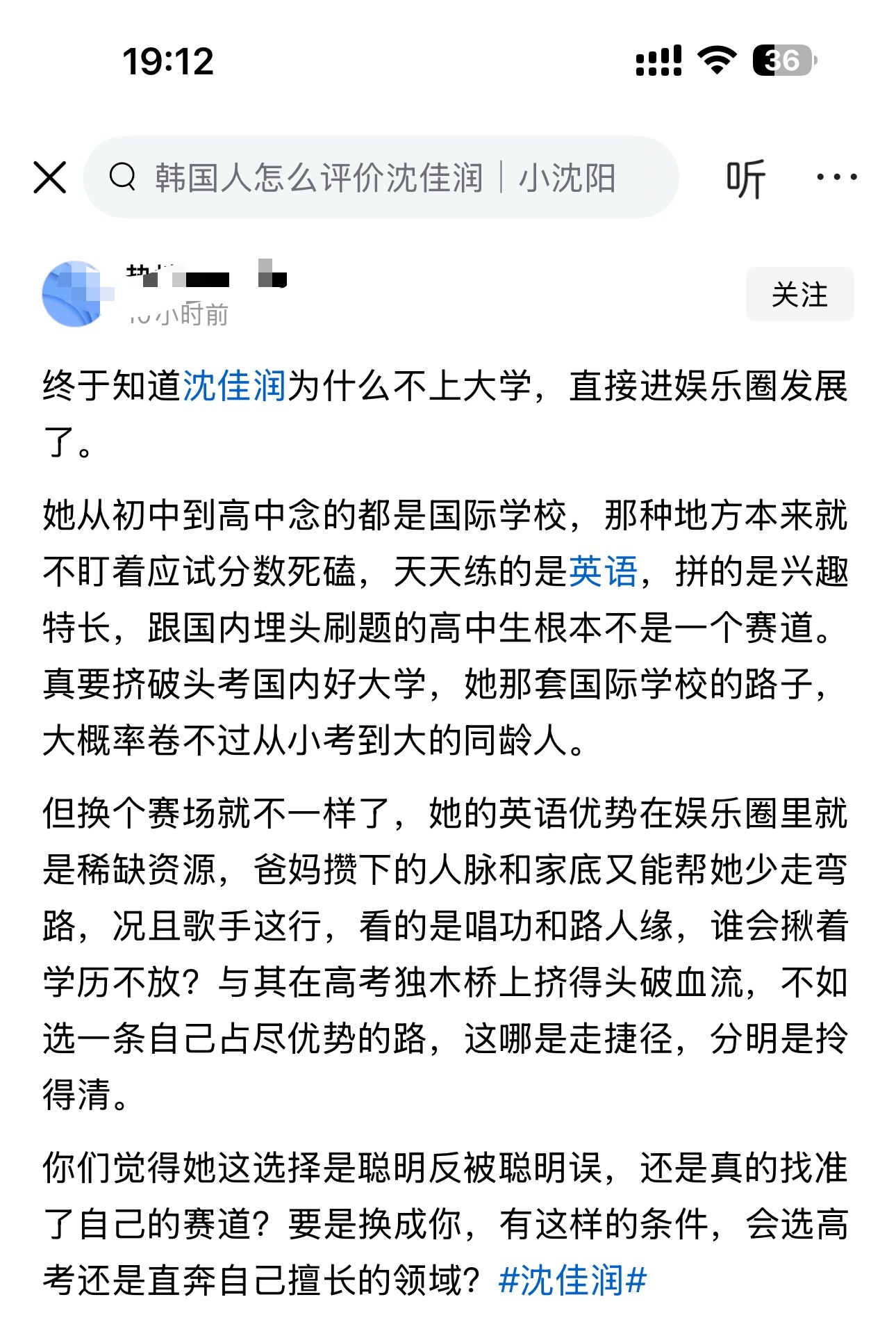 终于知道沈佳润为什么不上大学,直接进娱乐圈发展了。