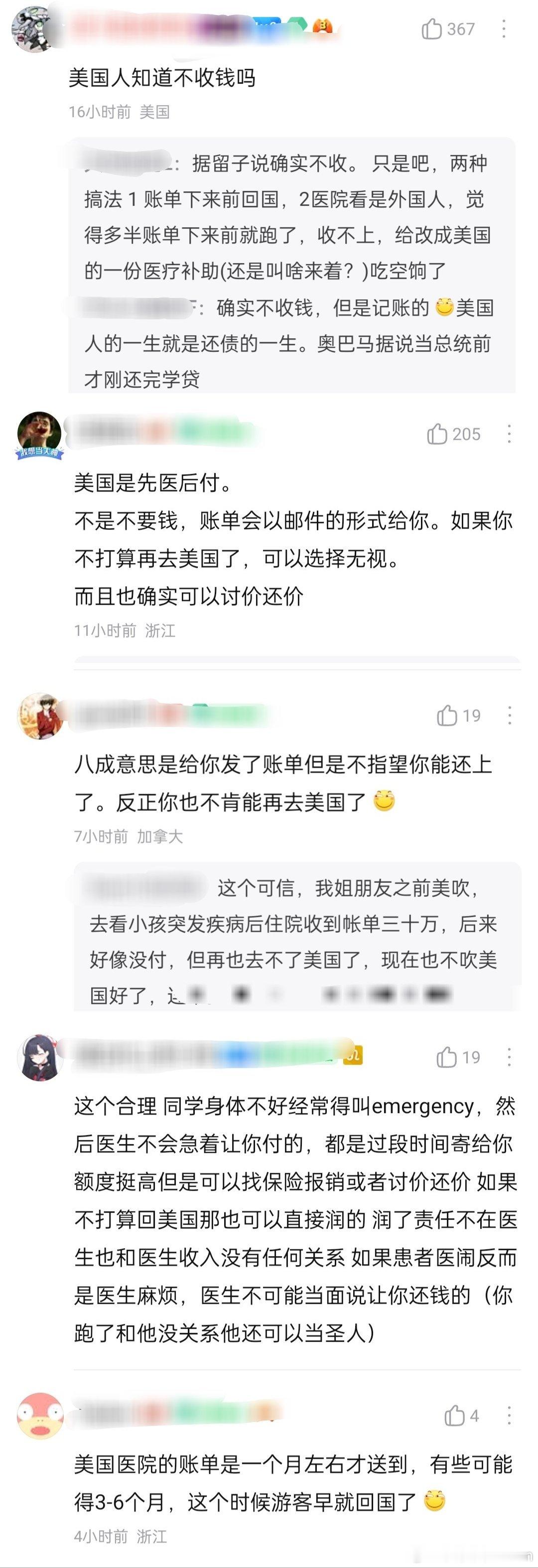 原来美国免费医疗是这么回事啊,先医后付,不收钱但记账,账单邮寄到了,游客早就回国了。