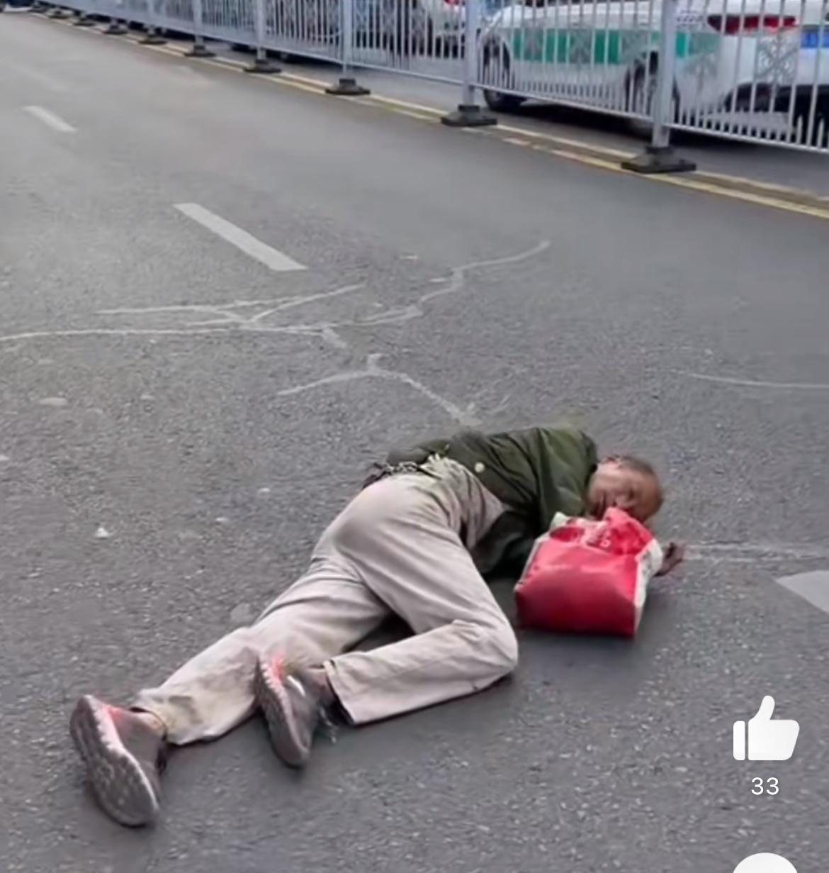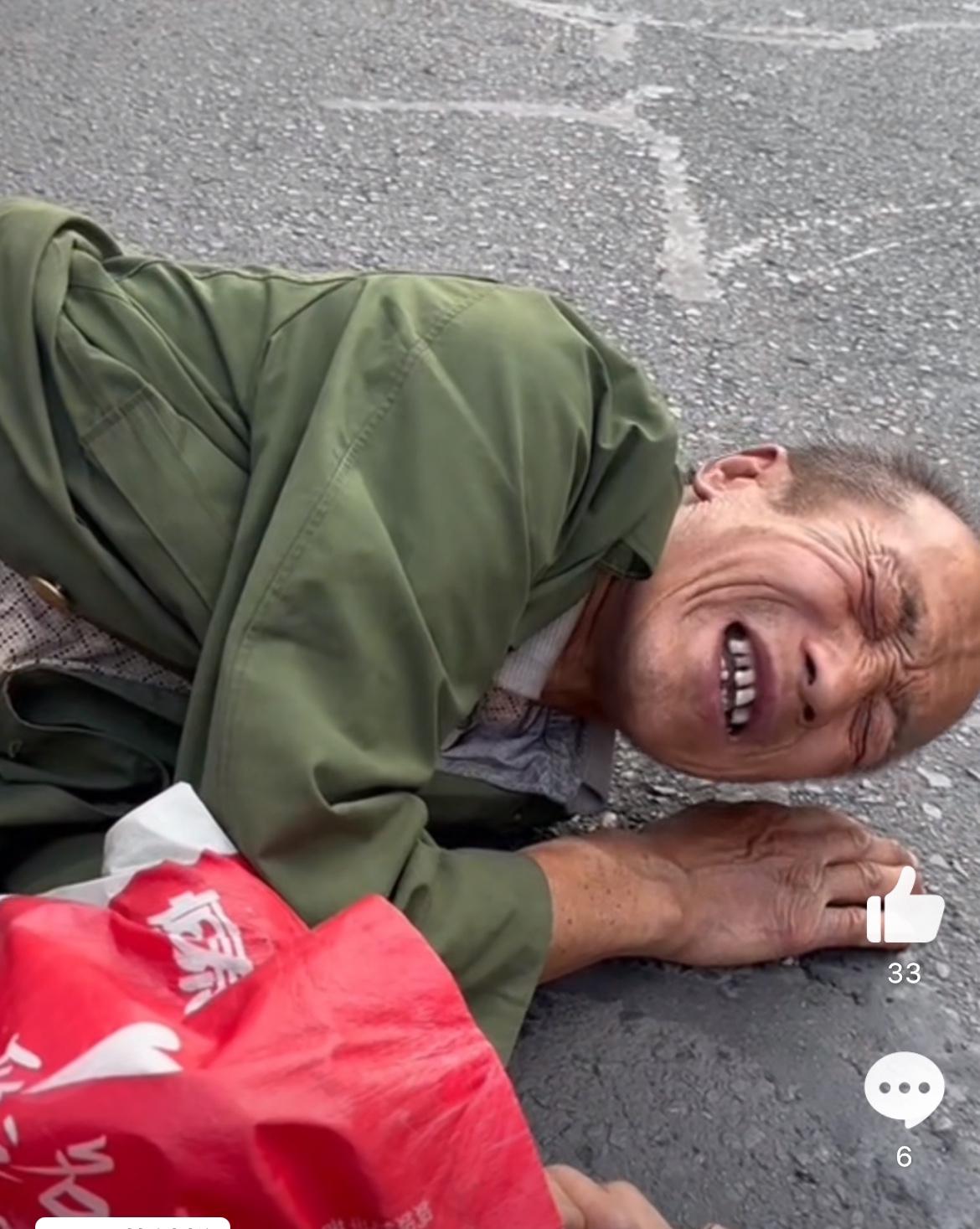 一老人横躺在马路上,路过女子发现想扶起他,老人的回答大跌眼镜:我没有吃的想讹人。