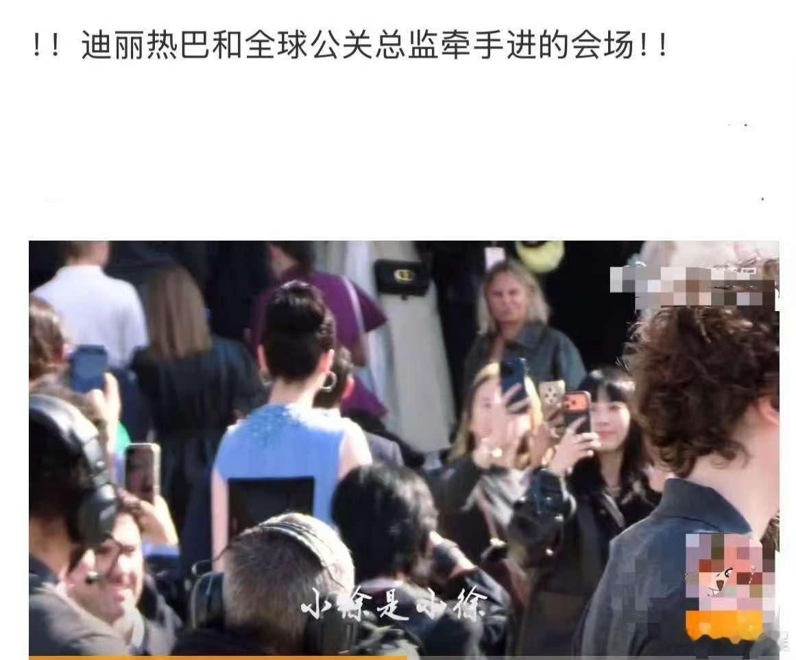 迪丽热巴迪奥看秀待遇迪丽热巴和全球公关总监牵手进会场迪丽热巴迪奥看秀待遇,厉害,