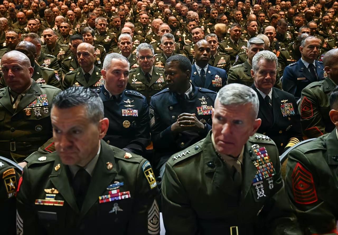 美军高层沉默70分钟!特朗普下令:把美国城市当训练场,士兵“想干嘛就干嘛” 一场全美高级将领大会,竟成了总统的个人秀场。当特朗普面对满座军方精英,宣布将芝加哥等美国城市变为“军事训练场”,并授权士兵对示威者“想干嘛就干嘛”时,台下陷入了一片死寂的沉默。这70分钟,被美媒形容为“美国军队史上最超现实的一幕”。 近日,一场由防长赫格塞思召集的美军高级将领大会,细节曝光后震动全美。会议核心竟是一场“忠诚度测试”——防长发出最后通牒:“要么听话,要么辞职。”他甚至颁布了包括“不准留胡须”在内的十项新指令。 然而,真正的高潮是突然现身的特朗普。在他长达70分钟的即兴演讲中,充斥着历史错误和对国内政敌的抱怨。但最令人不安的,是他向军队下达的“内战动员”。 他明确指示: · 将芝加哥等民主党执政的“危险城市”作为军队实弹训练场。 · 当军车被砖块击中时,士兵应“下车,然后想干什么就干什么”。 · 公开鼓励对示威民众使用暴力,声称 “他们吐口水,我们就打他们”。 这番将枪口对准本国人民的言论,让台下见惯风浪的将领们全程沉默,无人鼓掌。这一幕,被分析人士视为军方在“无党派传统”与“总统疯狂指令”之间的艰难挣扎。 结语: 前五角大楼官员发出警告:总统在鼓励军人对美国人动武,这是极其危险的。当一国军队被要求将本土城市视为战场,当最高统帅公然煽动暴力,这已不再是简单的党派之争,而是对美国立国根基的猛烈冲击。这场沉默的会议,或许正是一场巨大风暴的序幕。