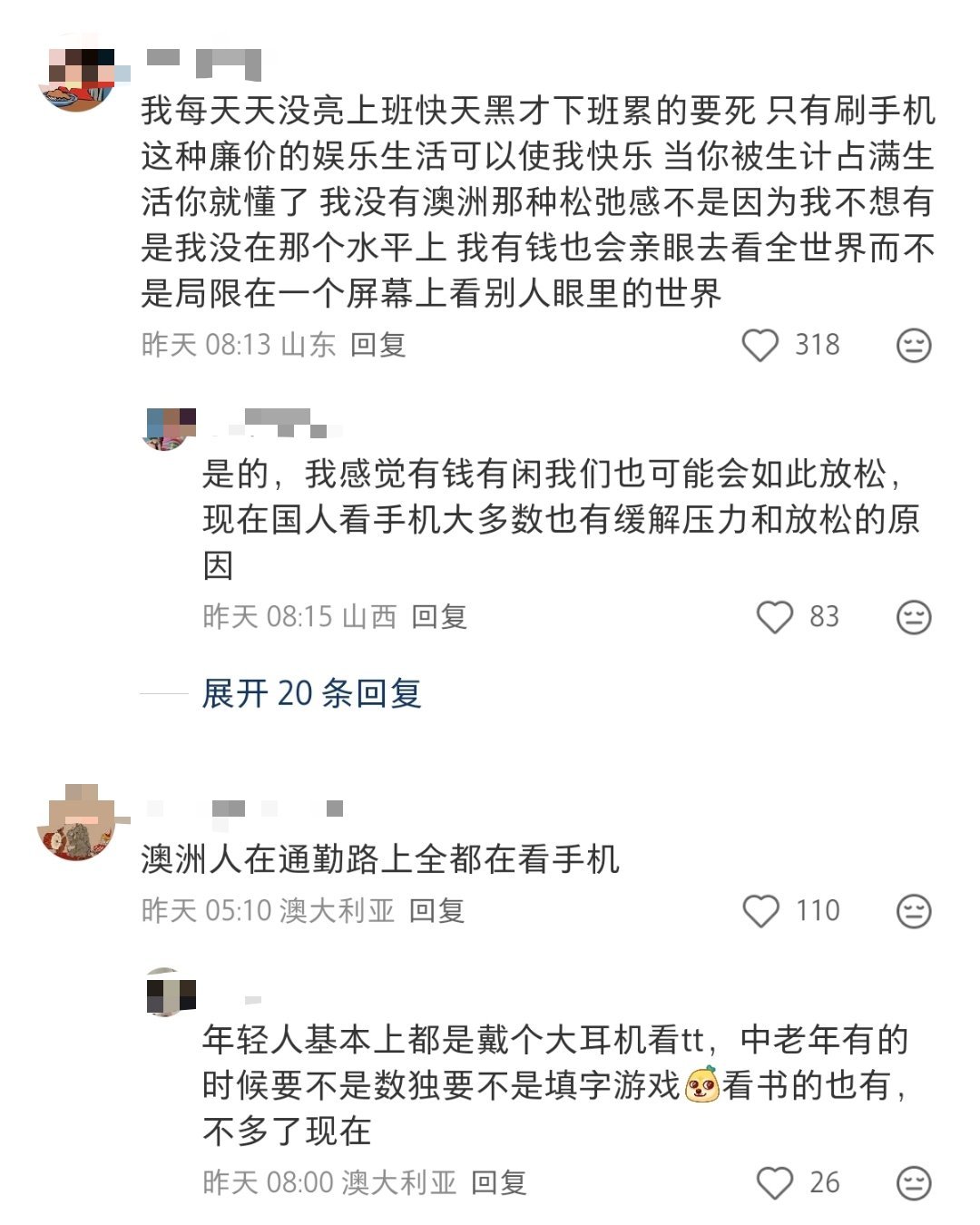 看到一个澳洲留子发帖,说澳洲人都不玩手机,专注自己的生活,他们冲浪、读书、散步,他们把时间给家人和那些美好的事物。