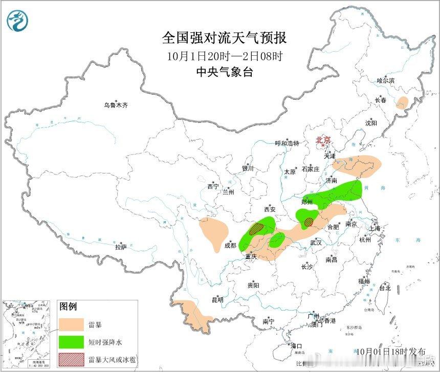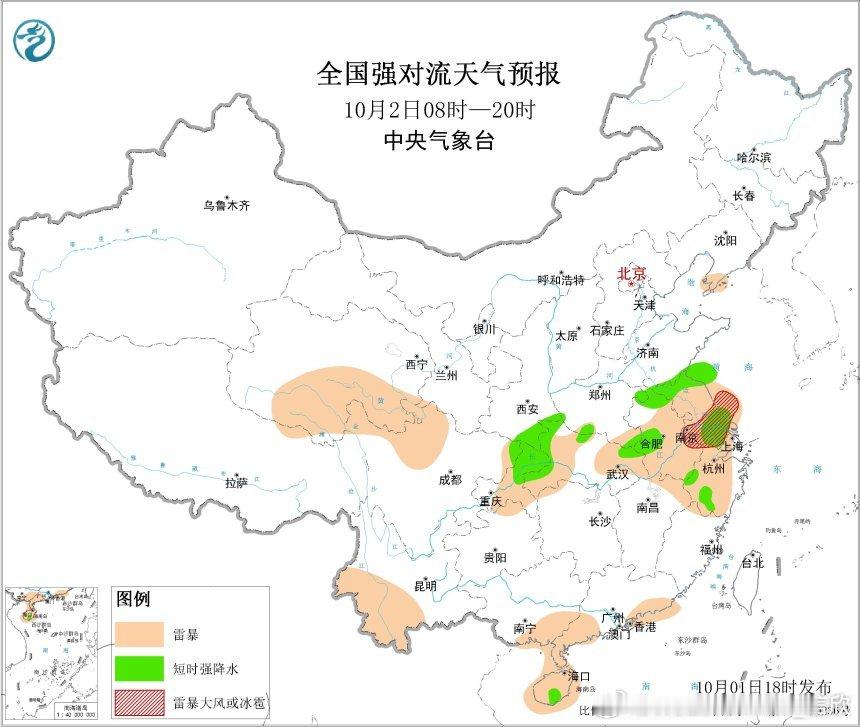 今晚中央气象台发布强对流天气蓝色预警,预计10月1日20时至2日20时,江淮东部、江汉东部、西南地区东部等地的部分地区将有8级以上雷暴大风或冰雹天气,其中,江苏中南部部分地区将有10级以上雷暴大风,最大风力可达11级以上;