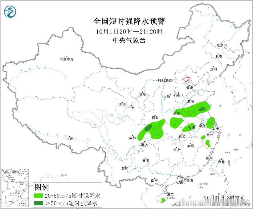 黄淮南部、江淮东南部、江汉北部、西南地区东部等地的部分地区将有小时雨量大于20毫米的短时强降水天气,其中,江苏北部、四川东北部等地的部分地区小时雨量大于50毫米,最大可达60毫米以上。
