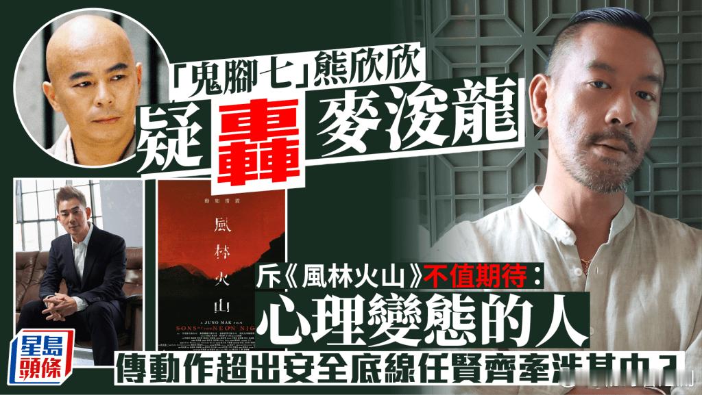來源網址 : 風林火山丨動作指由麥浚龍(Juno)執導的電影《風林火山》自2017年6月開拍,主演的巨星包括劉青雲、古天樂、金城武、梁家輝,任賢齊等,電影煞科8年終於被安排在十一國慶檔上映。今日(1日)是《風林》上映首天,成功在網上掀起了話題。有份在電影中擔任動作指導的熊欣欣,日前轉發友人觀看優先場的一張相片並說︰「心理變態的人的作品,也不值得期待。」矛頭疑似對準麥浚龍。