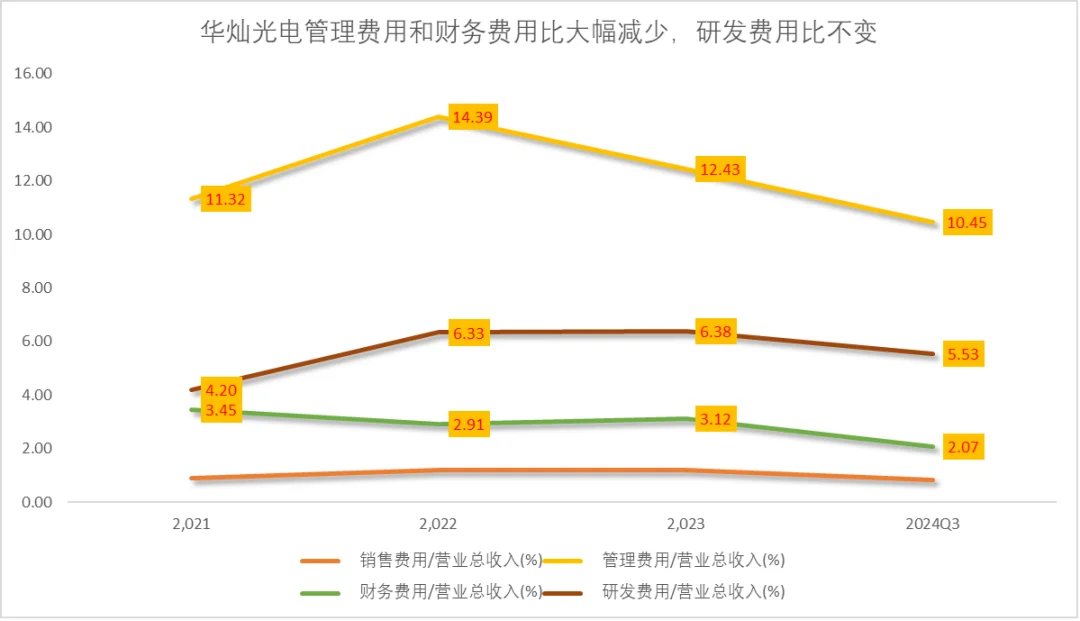 公司的费用率也逐年下降,从22年的25%下降到24Q3的19%,其中下降最大的是管理费用。