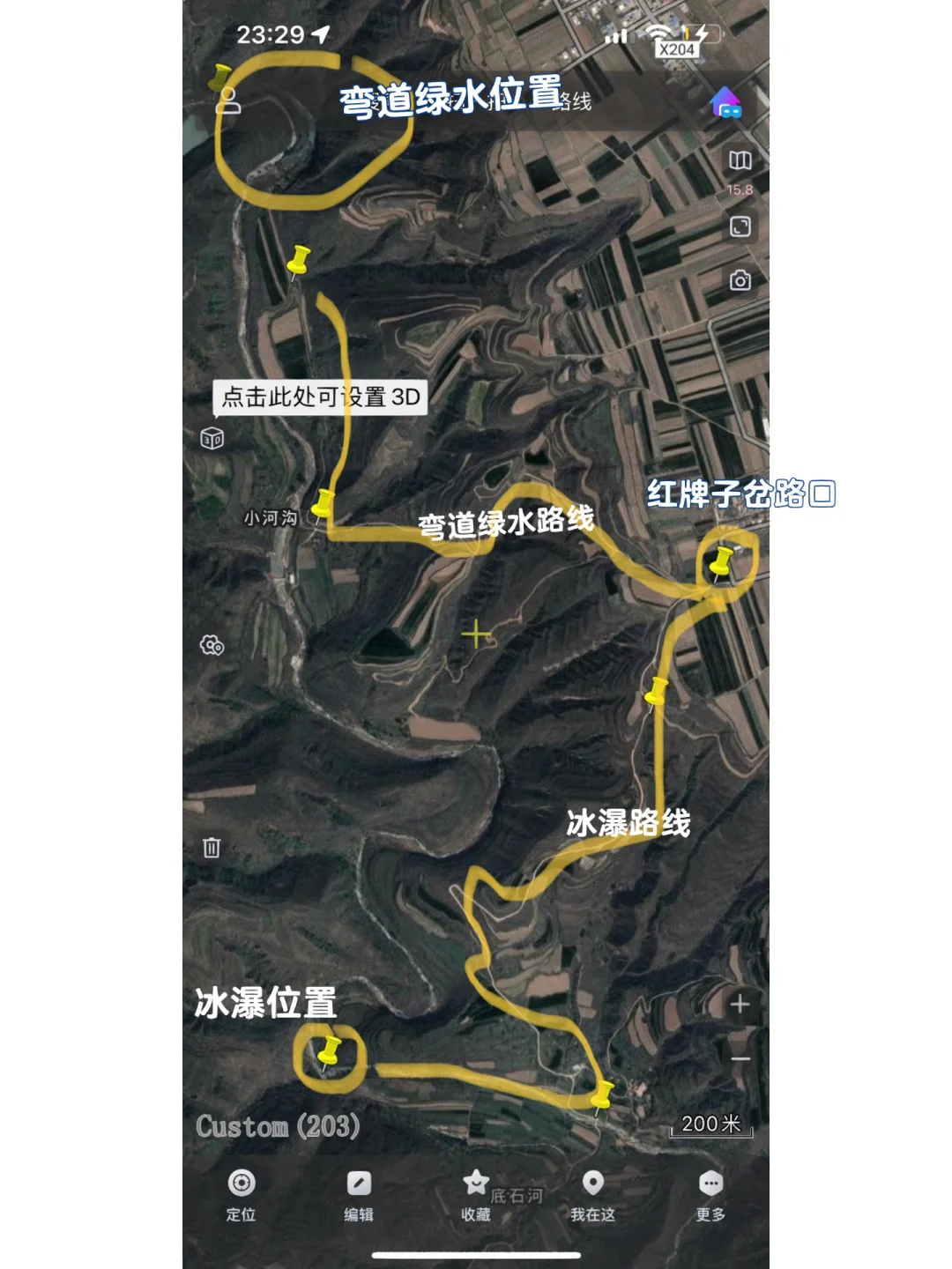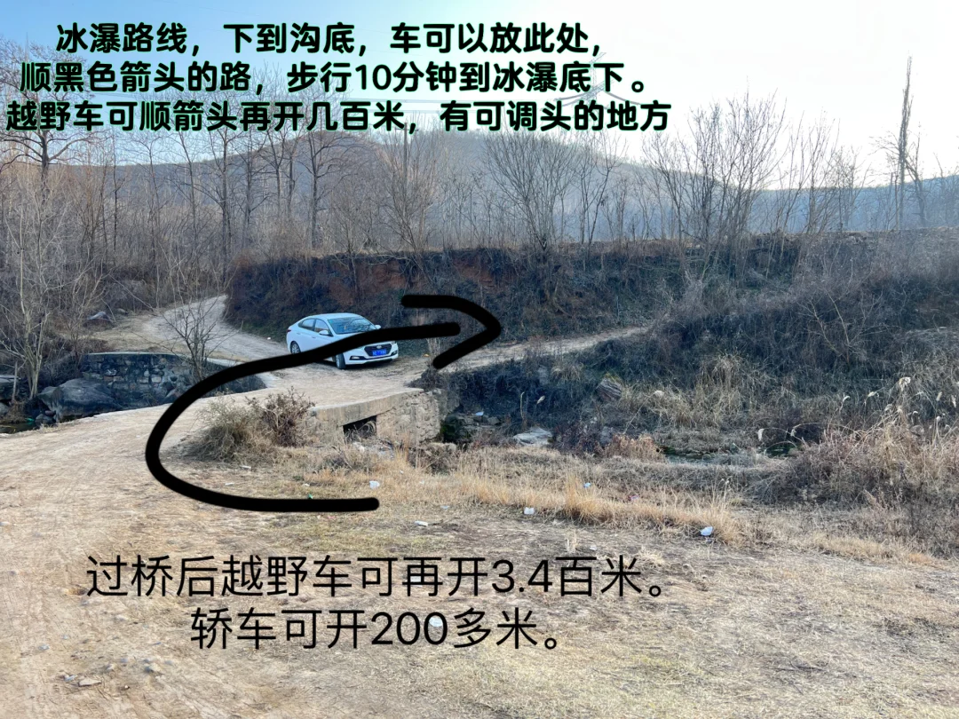 [向右R][向右R]路线说明:[拔草R]冰瀑,导航铜川耀州区西独塚村,按 图九 走就行。有2,3公里烂路窄路,下坡路,到沟底有桥,车可停桥附近,按 图十 走路10分钟到冰瀑底下。也可过桥再开2.3百米,有调头地方。