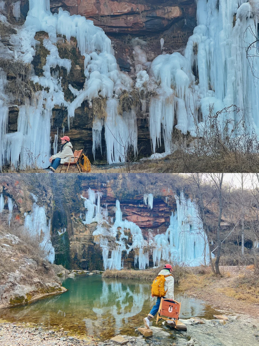 [向右R][向右R]图中是两个地方,相隔很近几公里,图一图二是冰瀑,后面是弯道绿水瀑布那片。[拔草R]冰瀑,没有秦岭里面冰瀑雄伟壮观,但这里安静没人,有小溪环绕,车基本也能开到。冰瀑下露营也特别棒。[拔草R]弯道绿水瀑布,这片是山沟比较平坦的一处世外桃源。有碧绿的溪水,可以钓鱼,芦苇丛中还藏了一挂瀑布,听说这片几年前要做旅游,后来搁置了。有时间建议两处都去看看。