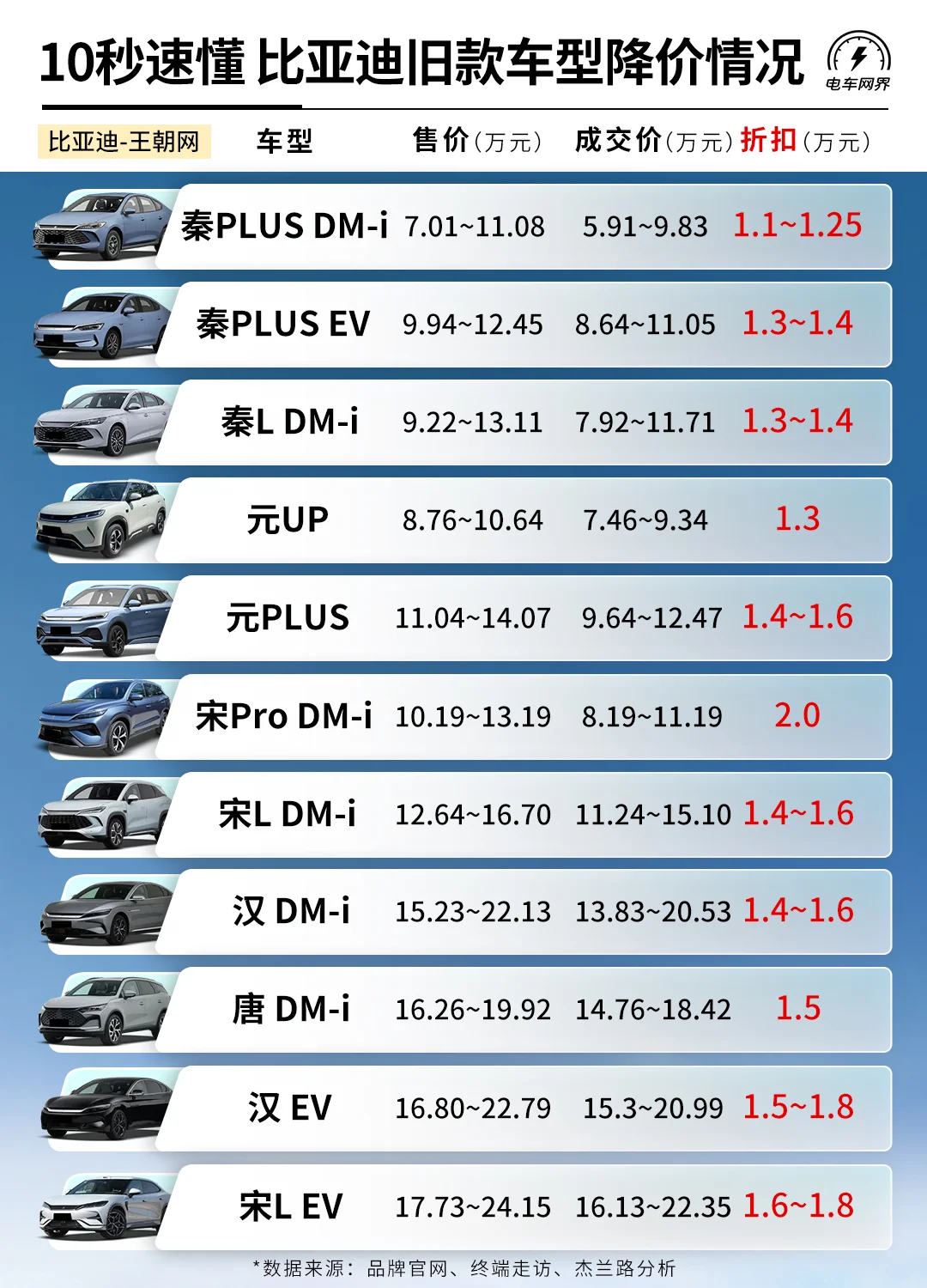 10秒速懂比亚迪现款车型降价情况
