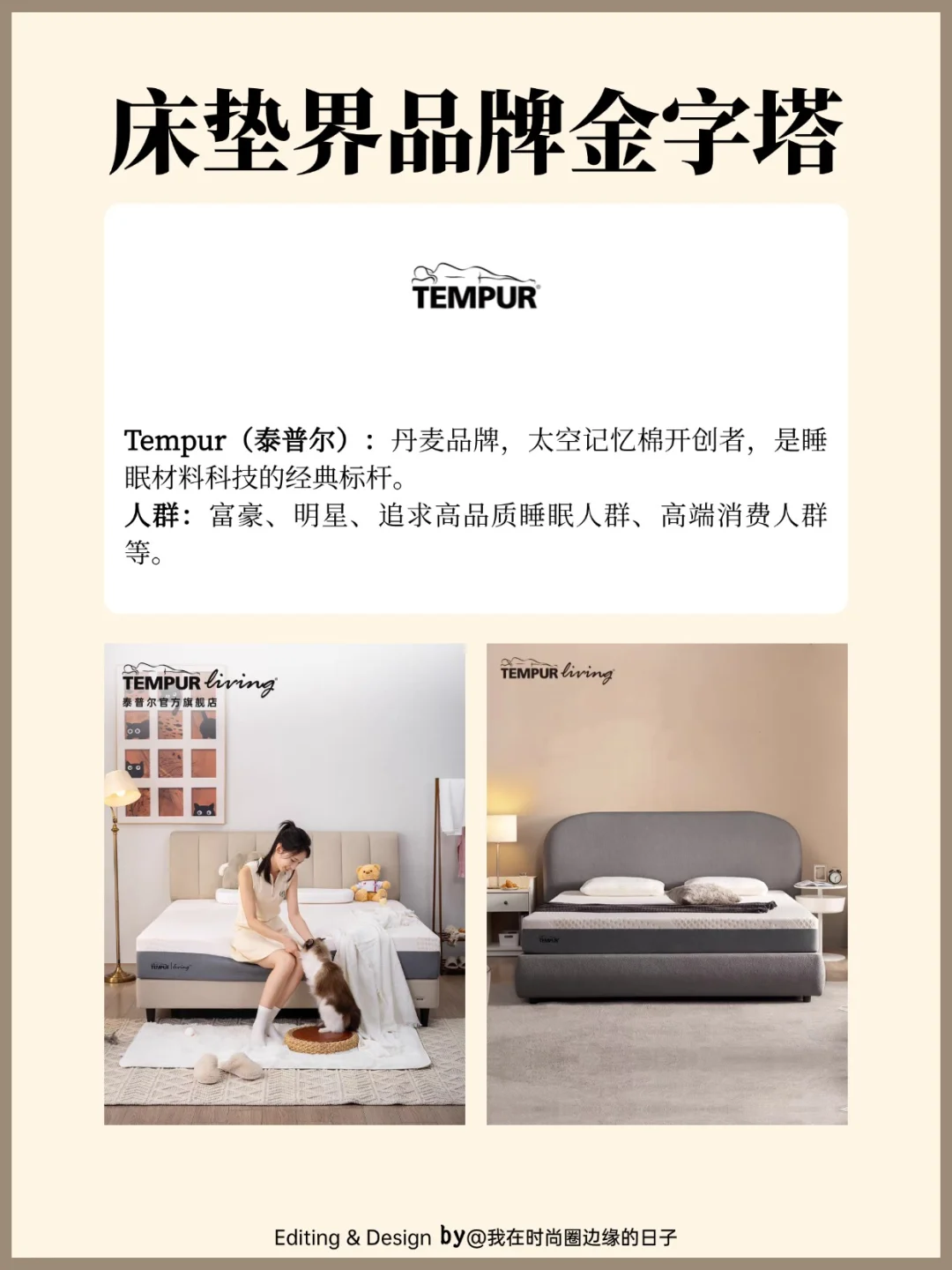 Tempur(泰普尔):丹麦品牌,太空记忆棉开创者,是睡眠材料科技的经典标杆。