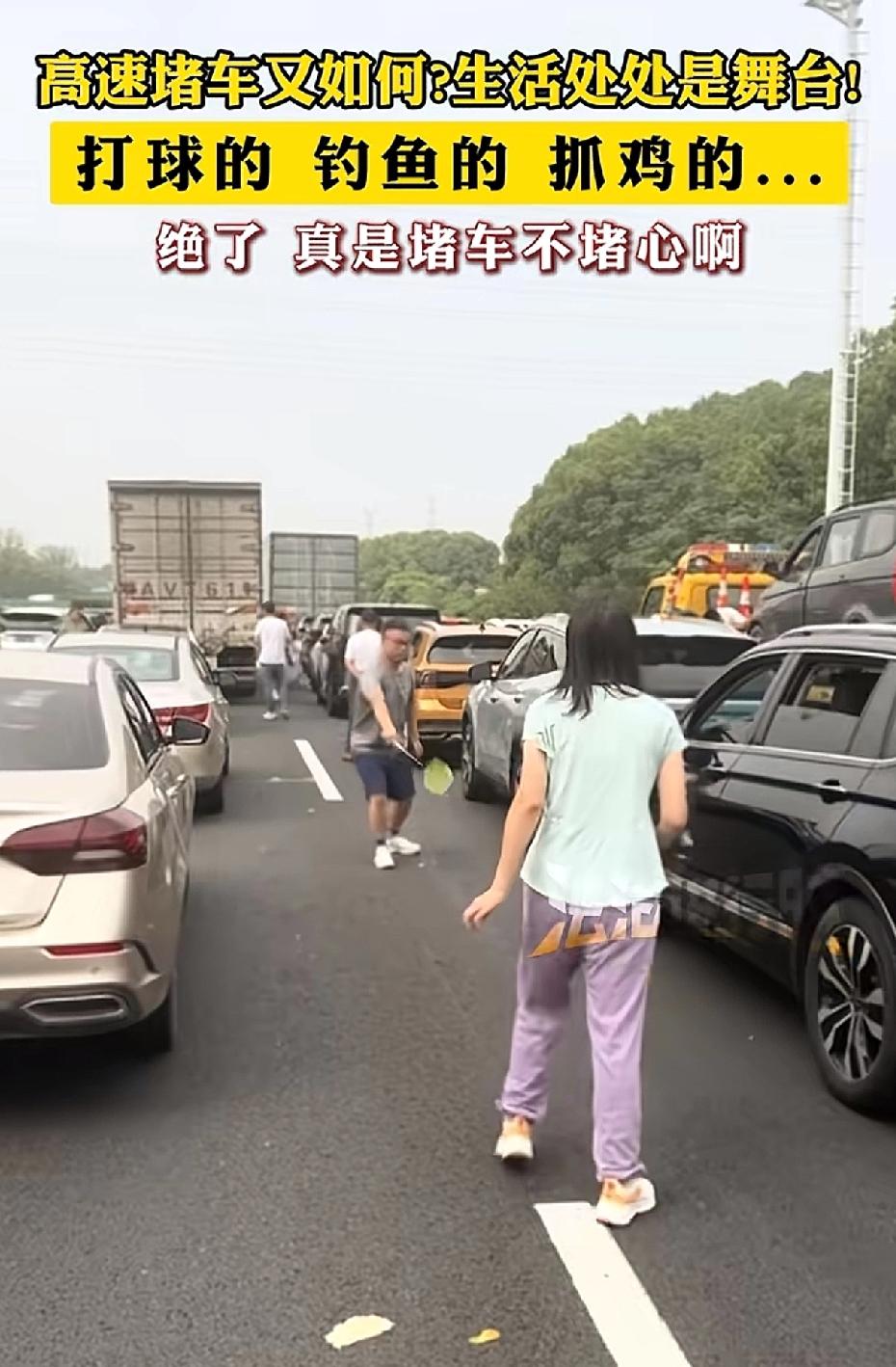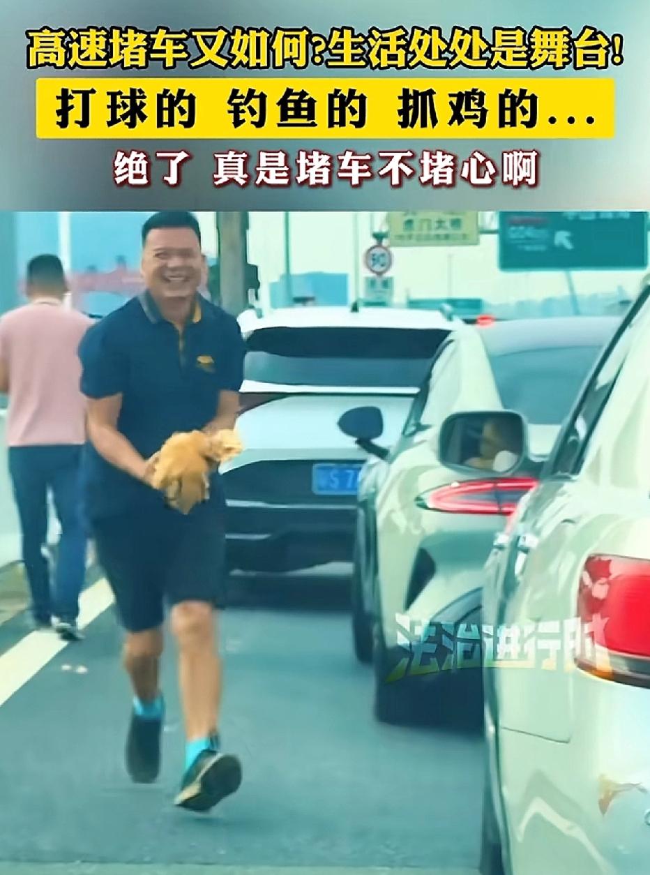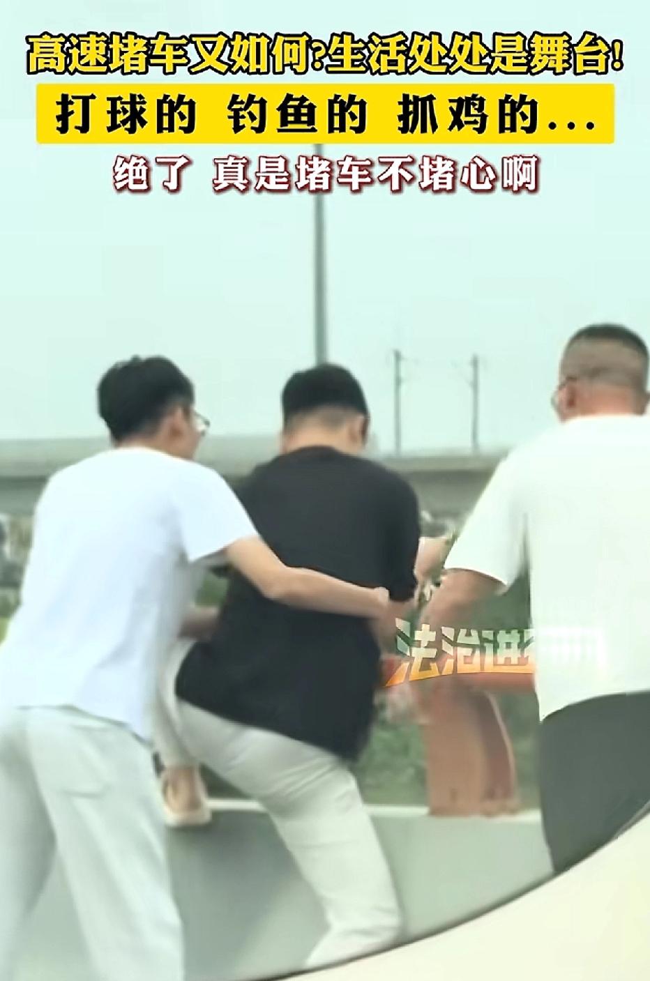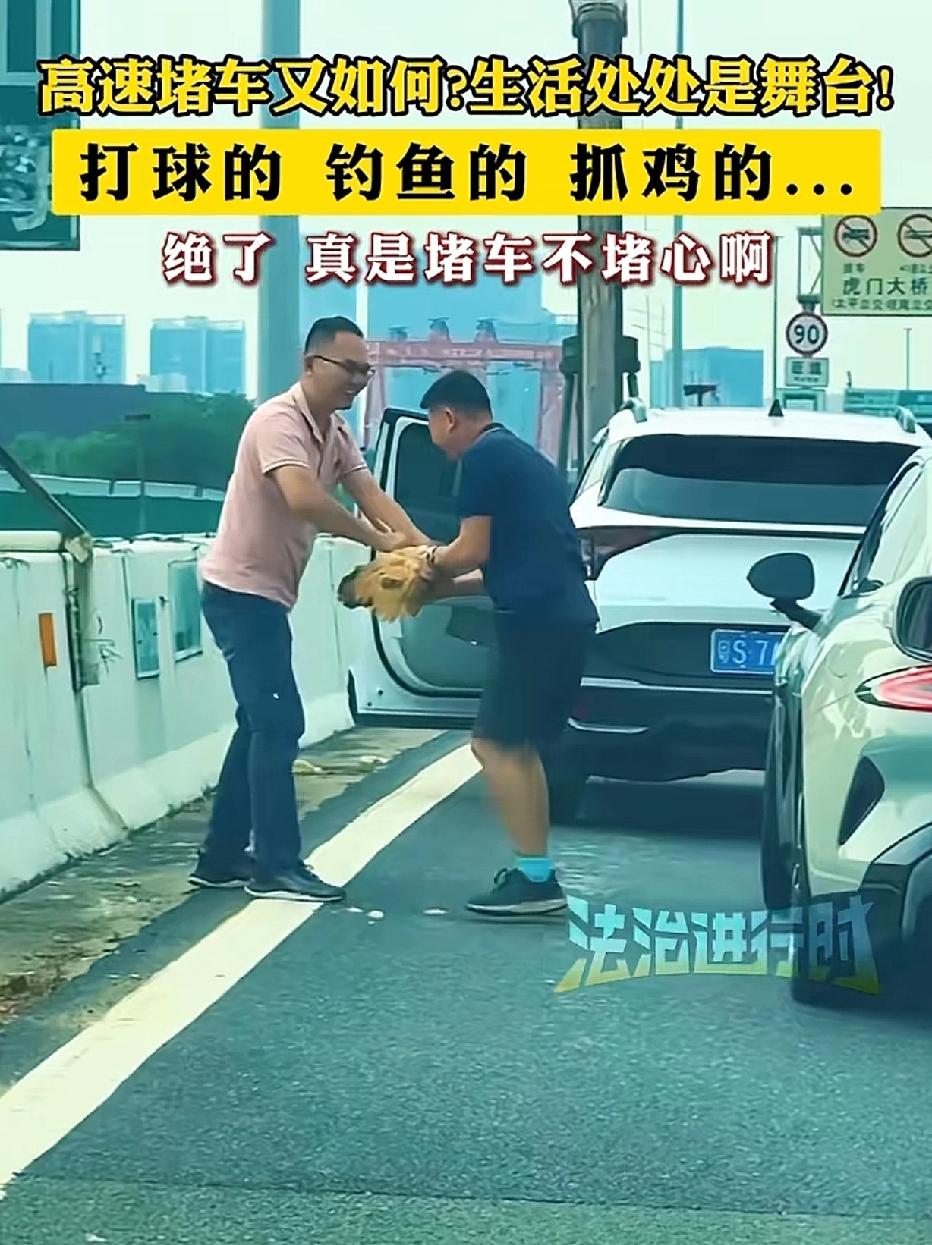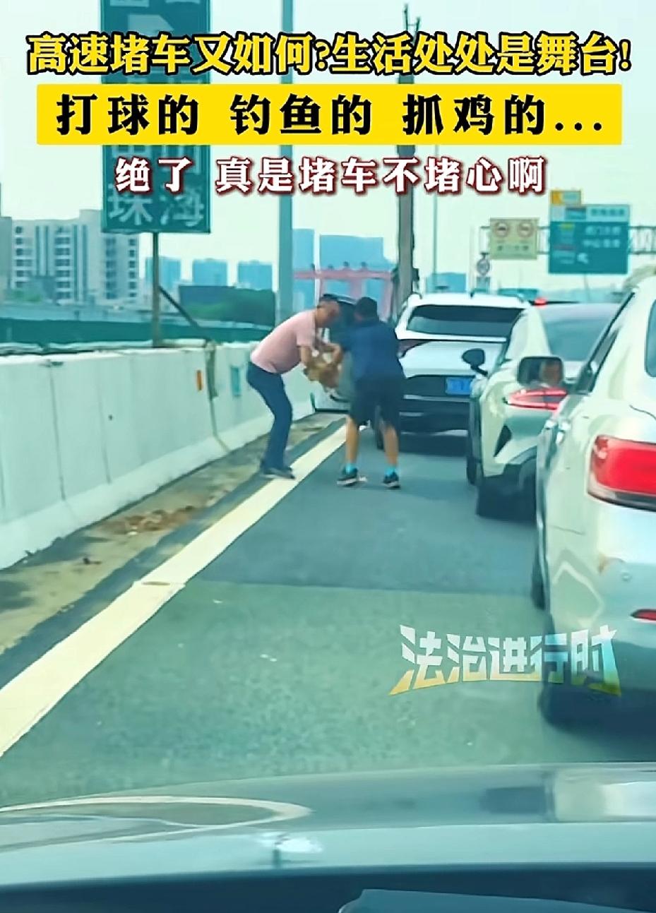 国庆节,高速公路上堵车,不堵心。有人拿出鱼竿悠然钓鱼,有人饶有兴致地在一旁观看,还有人帮忙抓住钓上来的鱼。 有人鸡跑了出来,便有人帮忙去抓。两个人欢乐的,合作完成了抓鸡的过程。 还有人在车辆之间狭小的空地上,打起了羽毛球。 更有甚者开启了涮火锅模式,这新奇的场景甚至吸引了外国游客,他们垂涎欲滴的样子很可爱,被邀请,一同品尝了中式火锅的美味,香得外国游客直呼:“Good, good, very good!” 高速公路上的这场拥堵,竟堵出了一种松弛感,让人不禁揣测,这些人准备的如此周全,莫不是故意选在这个时段来一场“高速公路一日游?” 或是堵车也是一种乐趣?一种休闲的方式? 这正是中国人乐观心性的体现,彰显出一个民族有趣的灵魂! 这样的民族,是其他人无法阻止他们的崛起与繁荣! 来源:法治进行时