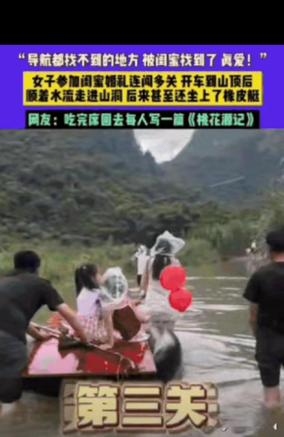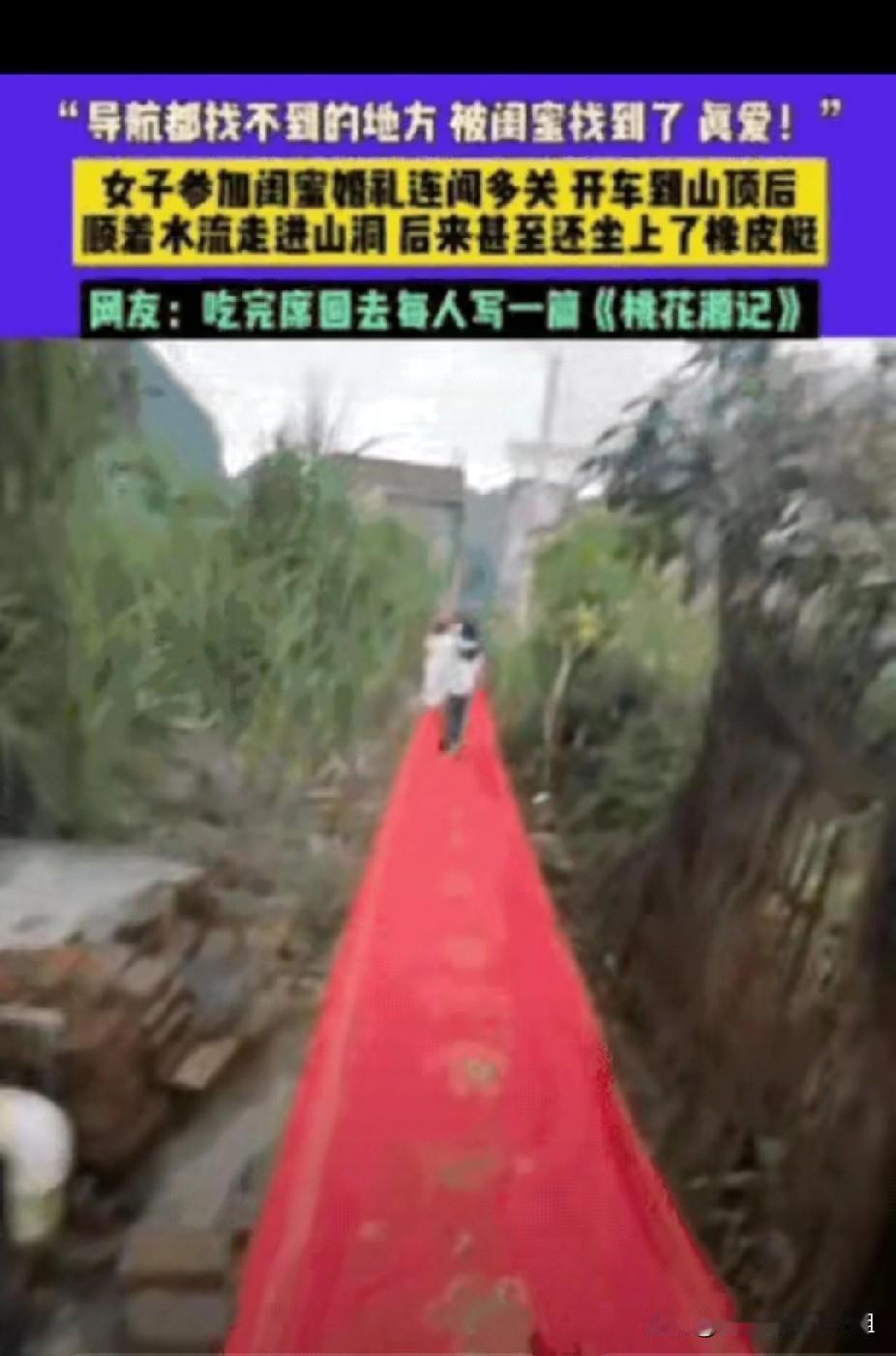 广西一女子参加闺蜜婚礼,没想到,她根据导航走,竟然直接将车开到了山顶,本以为这已经够离谱了,不料,还要顺着水流进山洞,后来甚至还坐上了橡皮艇,连闯多关,爬山涉水,才终于到达了婚礼现场,网友:吃完席回去每人写一篇《桃花源记》! 这位女子抵达现场后才发现,自己闯入了一个现实版的仙境。婚礼场地藏在一个天然山洞里,头顶是垂挂千年的钟乳石,灯光打上去,整个洞穴泛着朦胧柔和的光。宾客们的橡皮艇靠岸时,新娘正站在一片由地下暗河环绕的“小岛”上,婚纱的洁白与岩壁的深色形成强烈对比,脸上的笑容比任何灯光都耀眼。闺蜜一把拉住惊魂未定的她,笑着说这地方选了好久,就是为了让所有人都忘不掉。确实忘不掉,这趟旅程简直比婚礼仪式本身还让人记忆深刻。 这种独一无二的婚礼形式,在广西这片多民族聚居的土地上其实不算特别新鲜。壮族有在水上举行的婚礼,新人乘着小船接受祝福;苗族则有山地婚礼,新娘得穿着盛装徒步走过山间小路。这么看,山洞婚礼也算是一种富有地方特色的现代创新了。不过,这种追求极致体验的背后,也引来不少人的担心。山洞里光线昏暗,地面湿滑,再加上要乘坐橡皮艇穿过暗河,万一有个闪失可怎么办。追求独特固然好,但所有人的安全必须是第一位的。 话说回来,导航这次可真是结结实实“坑”了一把。现代人太依赖导航了,一旦信号不好或者地图数据没更新,就容易出现这种让人哭笑不得的情况。就像另一对广西夫妻,妻子带着丈夫回娘家,跟着导航在村里绕了三圈都没找到家门,最后还是得靠问路才解决。科技是方便,但关键时刻,人的判断和嘴巴问路可能更靠谱。 大家之所以对“山路婚礼”、“山洞婚礼”这么关注,甚至有点不理解,很大程度上是担心新人的未来生活。很多人觉得,嫁进大山意味着生活不便,甚至有人直接说“宁愿不嫁,也不能嫁进深山”。这种担忧很现实,毕竟交通是否便利直接关系到就医、孩子上学这些大事。但也有另一种声音,认为如果两个人真心相爱,愿意一起奋斗,外界的条件也许没那么可怕。幸福与否,终究是看屋子里的人,而不是看房子在哪里。 婚礼的本质,说到底是一场关于爱情的郑重承诺和美好期许。无论是极尽奢华,还是像这样返璞归真,核心都是两个人携手开启新生活的决心。选择山洞也好,选择山路也罢,那份希望仪式与众不同的心意是相通的。重要的不是形式本身有多奇特,而是这个形式是否真正承载了他们的情感和愿望。 各位读者你们怎么看?欢迎在评论区讨论。