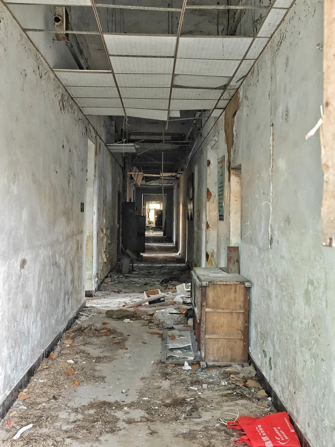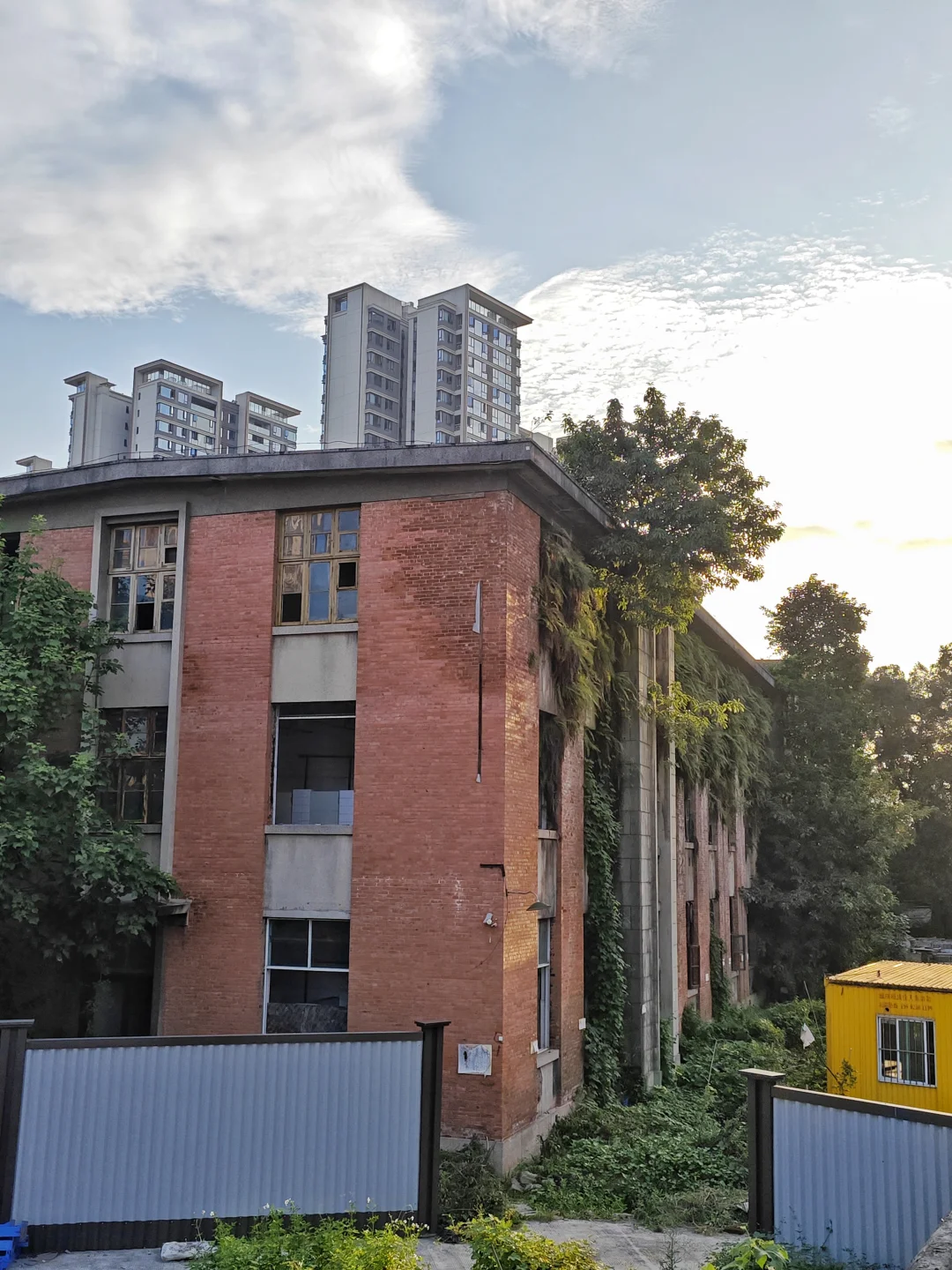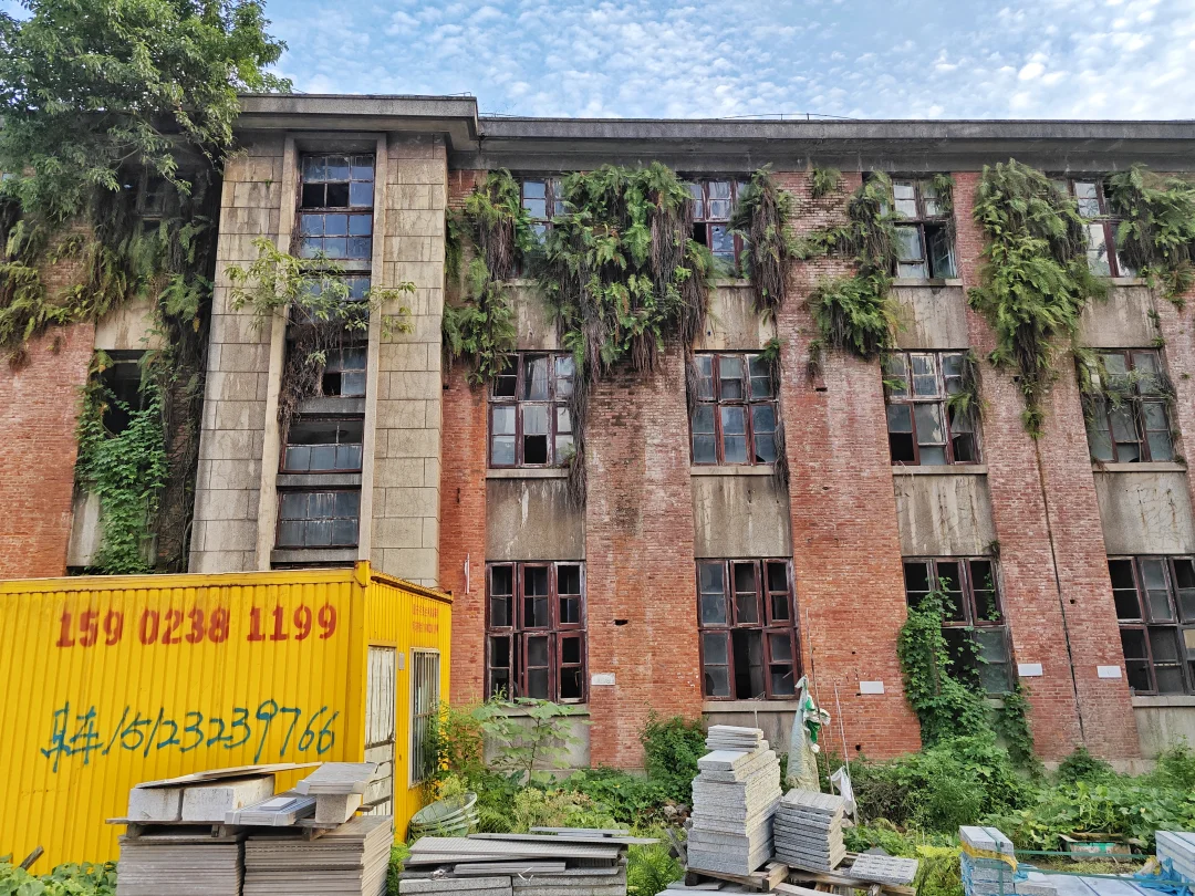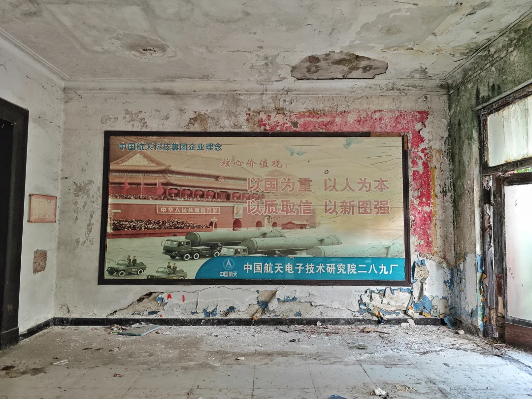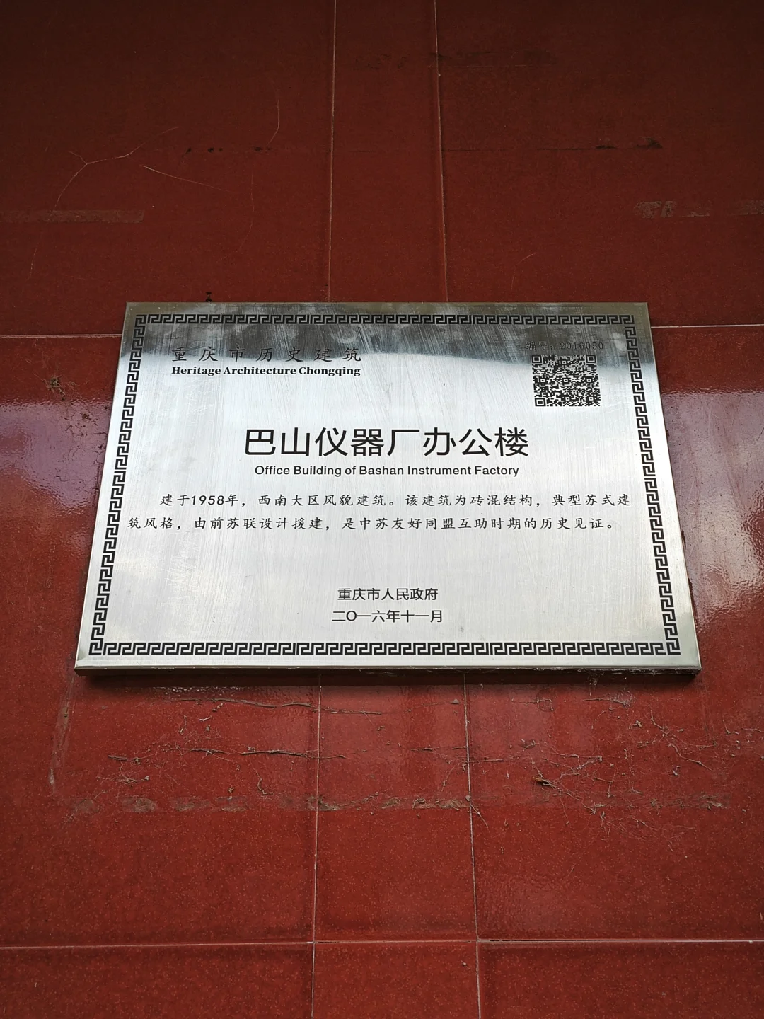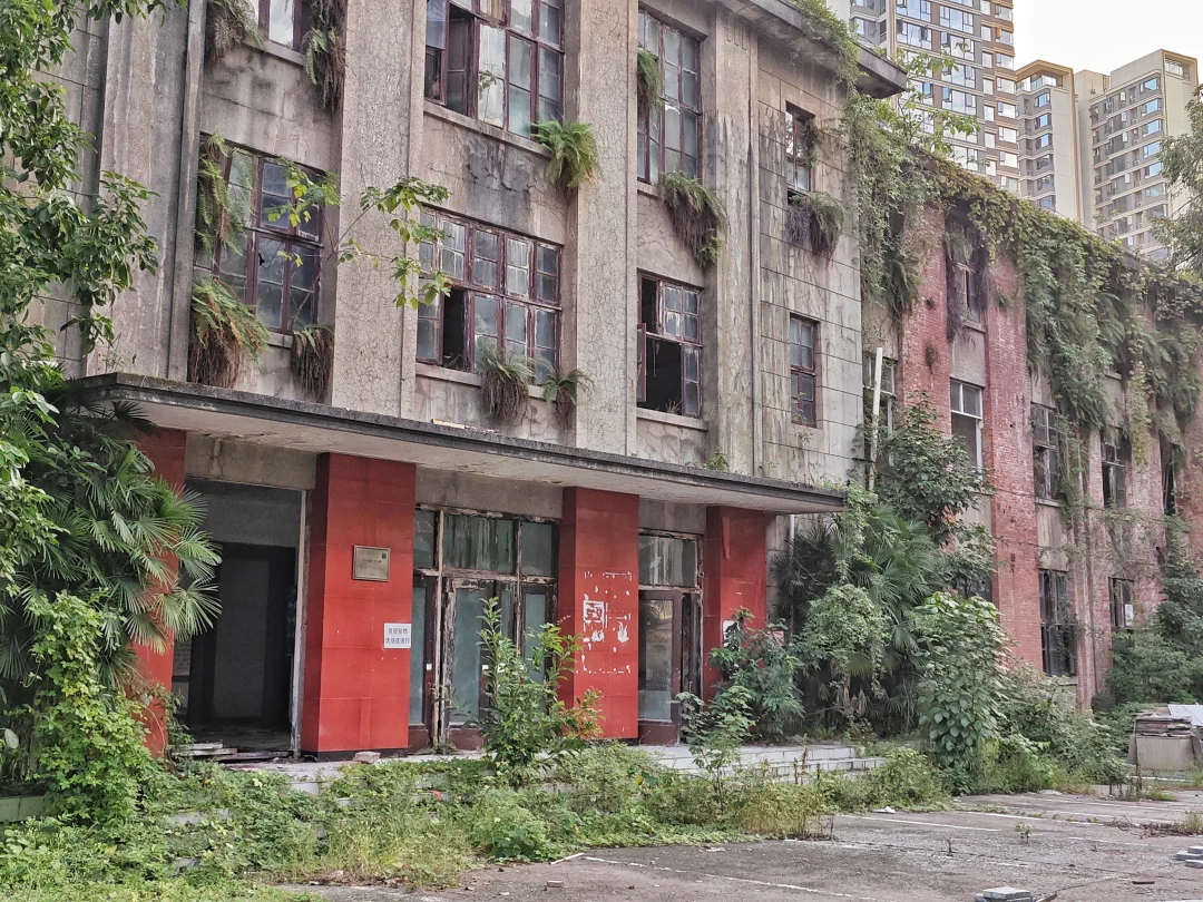 那到底改革进行得如何?等到下回分解。反正,改革成功了,当时没一个人下岗,不但没有,而且效益大增,好多人一下发家致富,过上小康生活甚至更好。现在巴山仪器厂改名重庆巴山仪器有限责任公司,是中国航天科技集团旗下国有独资企业,已经搬到陶家镇去了。目前巴山厂所有老厂房只剩下那栋办公楼,这也是最有历史价值的一栋。建于1958年,是西南大区风貌,红色外墙,高大石柱,俗称飞机楼。和小龙坎探矿厂里面的办公楼风格很相似,目前周围已经全部围起来,里面是搬空状态,但仍然很有历史韵味。