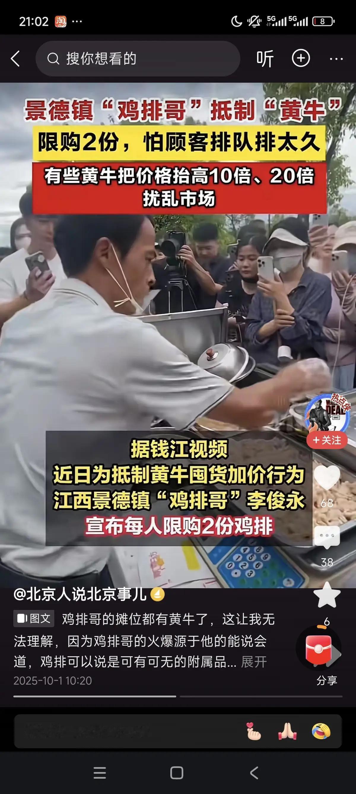 准备去景德镇的人们应该注意了! 鸡排哥的鸡排现在已经开启了限购令,每人仅限两份!不是他想饥饿营销,而是黄牛已经把鸡排的价格炒到了20倍, 如果他不开启限购令,恐怕最后会炒到50倍甚至100倍,到时候你想吃一个鸡排,也许就要花上几百块才能吃上你一份美味的鸡排。 有没有吃过鸡排哥的人?要不来透露一下他的鸡排到底有那么好吃吗?全国各地都在蜂拥而至甚至,甚至一些周边邻国的也前往他的摊位排队,就为了吃上一口鸡排。