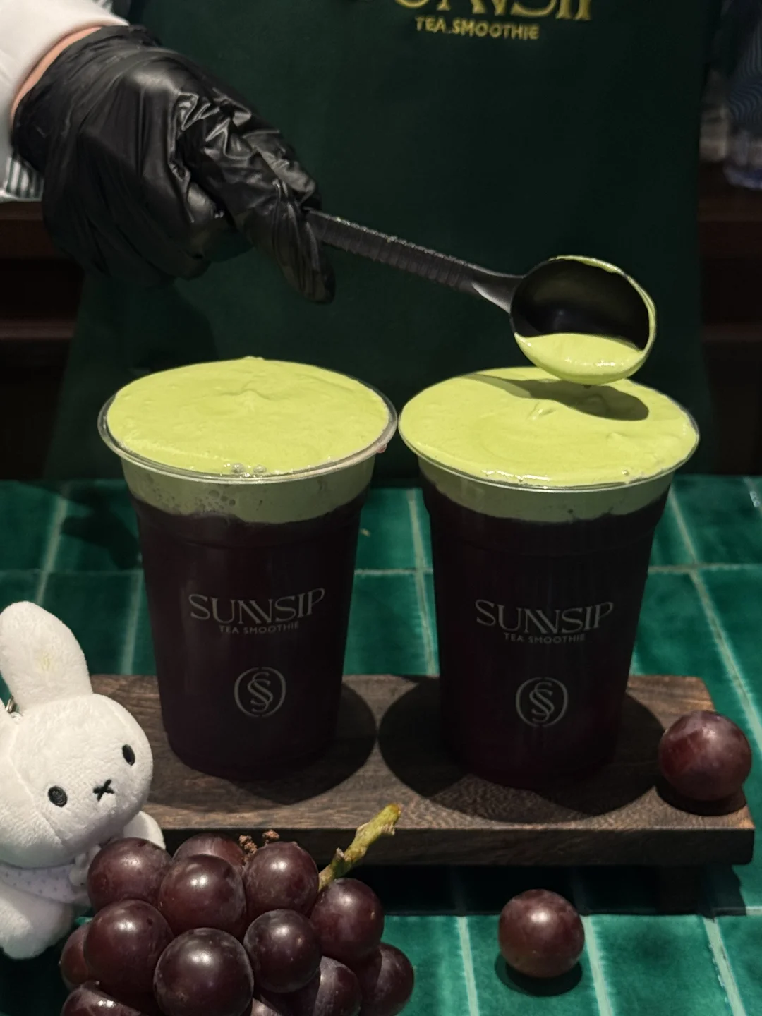 上海秋日街头坠惊艳的一杯🍂…… 巨鹿路新开的很有审美的茶饮店! 单丛·一抹葡光、茉莉软籽石榴… 茶冰昔口感都还蛮惊艳的! 预计爆火🔥…