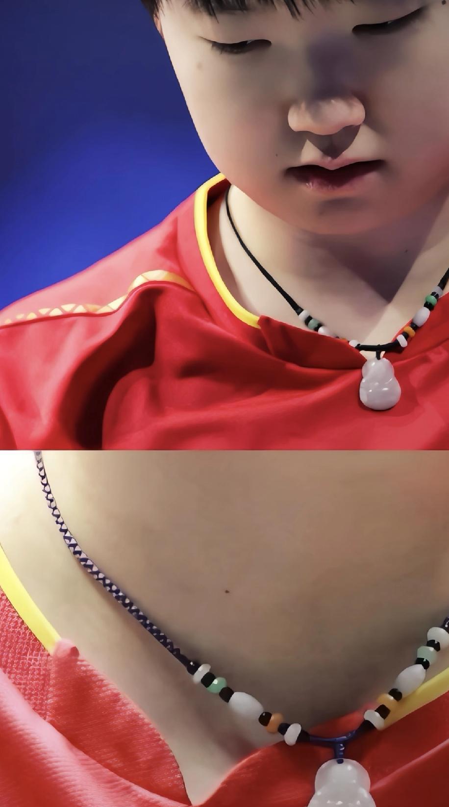 其实老早以前就觉的紫色旺孙颖莎,这个新项绳真的太配她了,而且跟她的狂飙飒一个颜色,紫定赢! 天蝎座的幸运色也是紫色哦,绳子每边都是11颗小珠子,也寓意着永远先拿到11分。 大家真的是在拿显微镜看她,都饱含浓浓的爱意[比心]