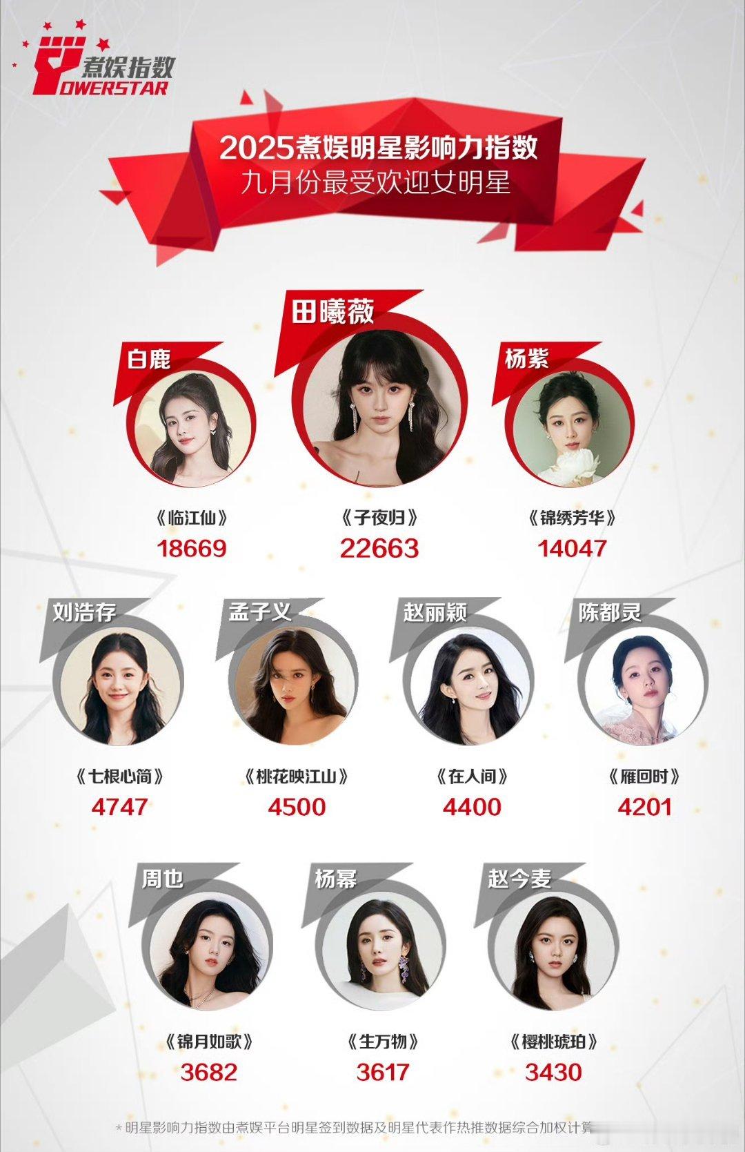 田曦薇在9月份最受欢迎女明星登顶第一了!!