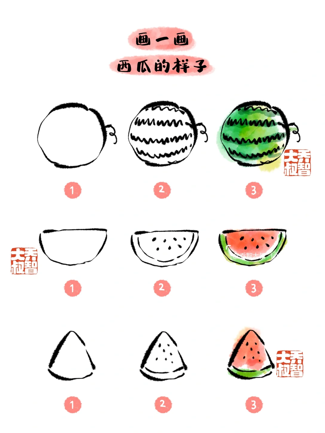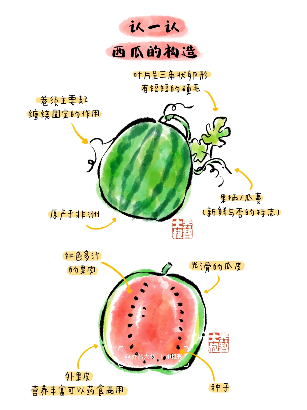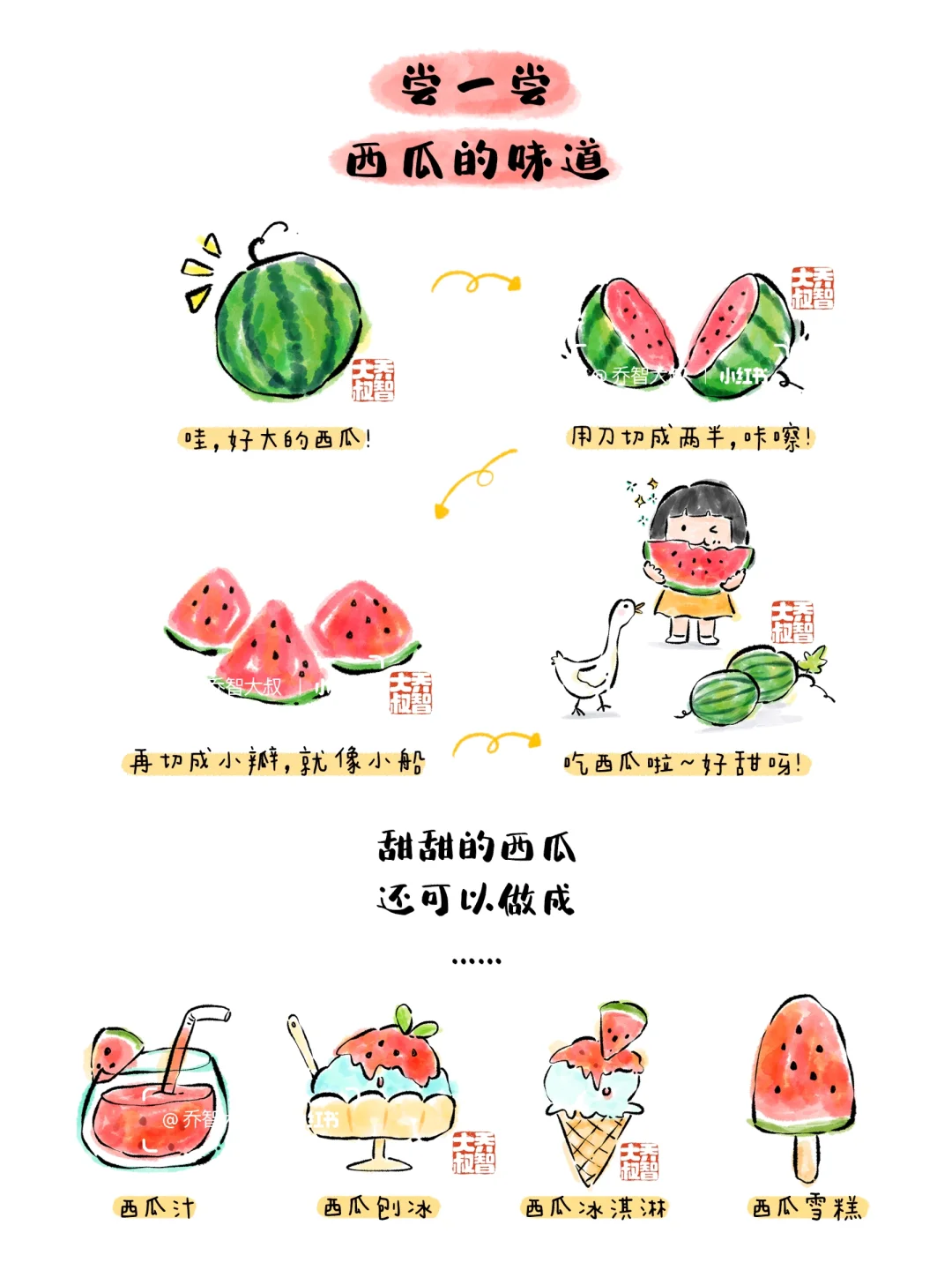 夏天的市集上 到处都能看到西瓜的身影 一份西瓜图鉴 带孩子尝一尝、看一看 认一认、画一画 大家都喜爱的西瓜吧 没有哪个孩子 不爱色彩斑斓的水果 正如没有哪个孩子 不爱西瓜味的夏天 用好吃又好看的西瓜 带孩子一起 走近好吃又好看的夏天吧