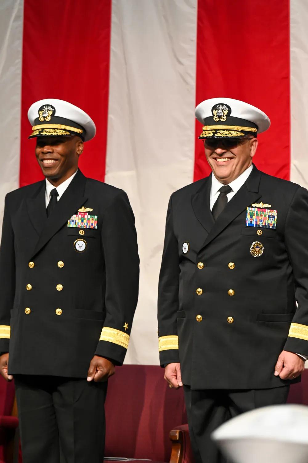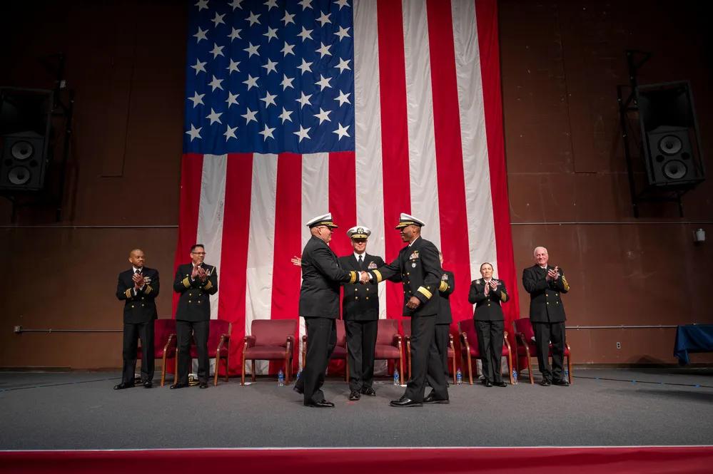 没有想到这么快美国“肥胖将军”就被换将。 美国海军招募司令部司令亚历克西斯“莱克斯”·沃克少将在米林顿举行的海军招募司令部(NRC)换帅仪式上与丹尼斯·贝莱斯少将握手。NRC的目标是吸引最优秀的候选人,以确保美国海军的持续成功。