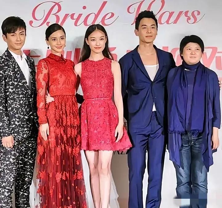 五星同框:朱亚文身材修伟,疏眉朗目,最为抢镜;一袭红色长裙的杨颖朱颜熙曜,柳眉杏眼;长发飘飘的倪妮眉若墨画,唇如红玉;最左侧的应该是陈晓吧?顺便问一下最右侧那位矮胖女士是谁?