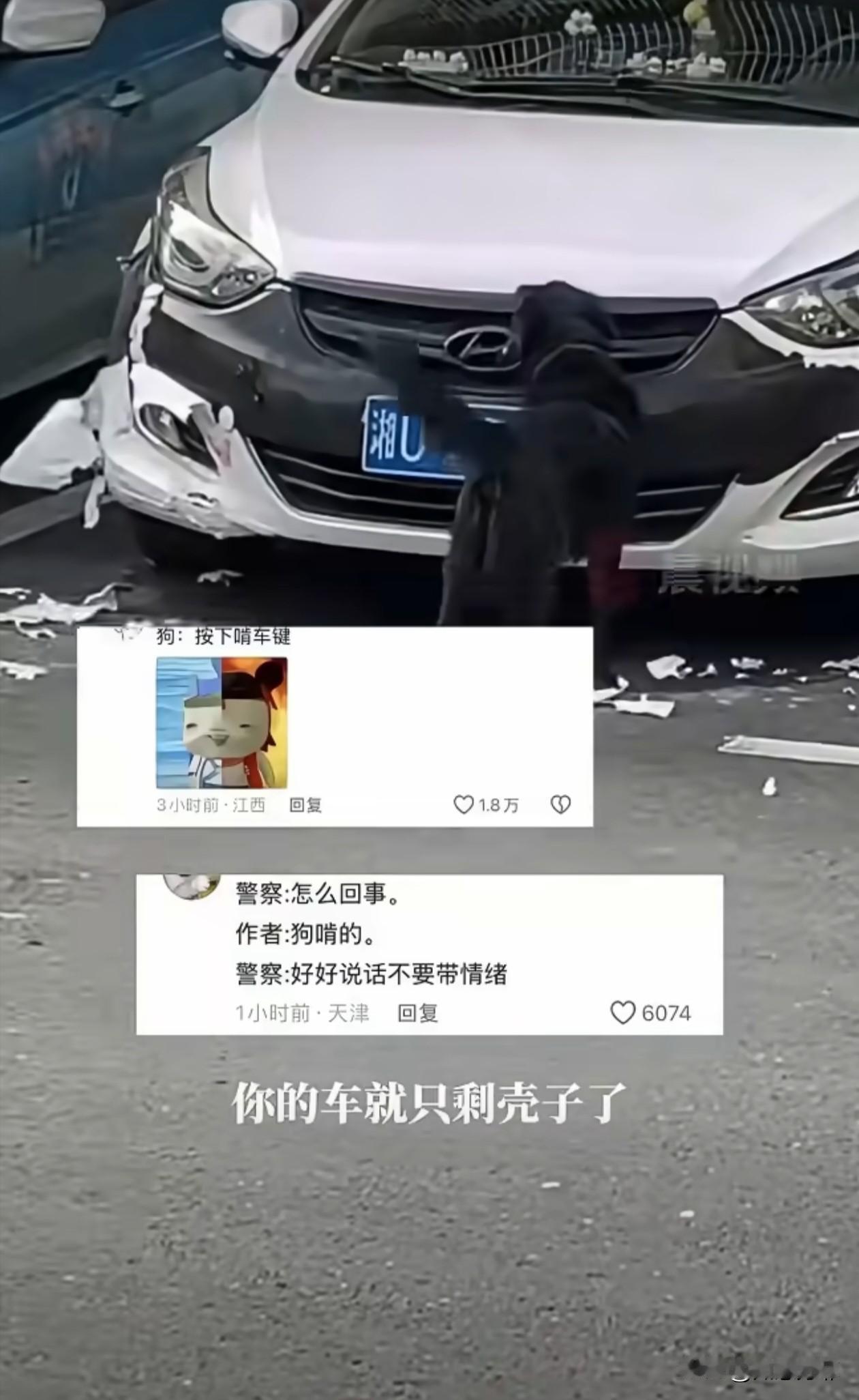 一女子接到陌生电话,说她的车被狗啃了,女子第一反应以为是骗子,结果到现场一看,车已经被啃的面目全非。女子:笑了十多分钟,“肇事狗”趁机跑路。 湖南,女子正在家里睡觉,一个好心的大哥打来电话说,车被狗啃了,再不来只剩壳子了。 女子一开始没相信,但还是有点不放心,于是决定去看看。 到了路边的停车位,她发现自己车的车衣被撕得一条一条散在地上,车身全是狗的口水印和牙印,旁边还站着一只戴项圈的黑狗。 有路过的人说,刚才就是这只狗一直在啃车。女子想拍下黑狗和车的照片留证据,但狗一下就跑没影了。 最后她报了警,不过停车场的监控画面糊得很,根本看不清狗主人是谁。 大多数网友都觉得女子太冤了,找不到狗主人,自己就要承担修车的麻烦,而且这种情况保险公司也不理赔。 还有网友觉得核心问题在于狗主人不负责,狗戴着项圈说明有主人,遛狗时不看住,闯祸了就隐身。 这次狗把车啃了,本质就是狗主人没尽到看管义务,希望狗主人知道后,能站出来承担责任。