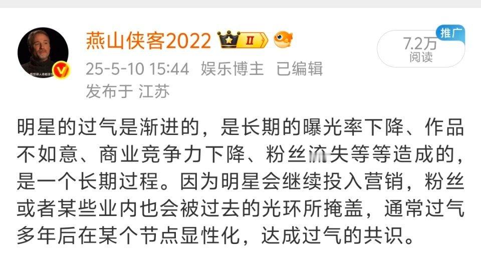 常看常新。明星过气的特征。过气明星通常不会承认自己过气,所以会有很多挣扎动作,比