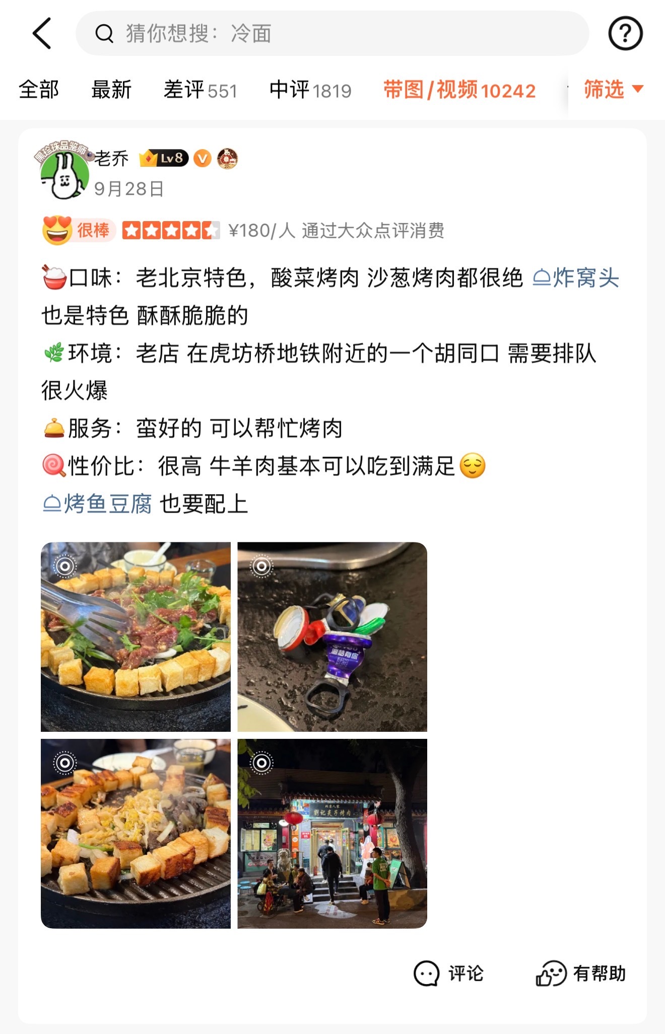 想起去年带外地朋友逛北京,她差点被所谓的老字号坑去喝198一壶的茉莉花茶和一碗98的老北京炸酱面——要是早翻开必榜的本地人评论,就能看见北京大妞的犀利留言:「这家除了匾额老,其他都是新的」。多亏了我悬崖勒马,带她吃上了必榜的炙子烤肉!我朋友直接吃美了!