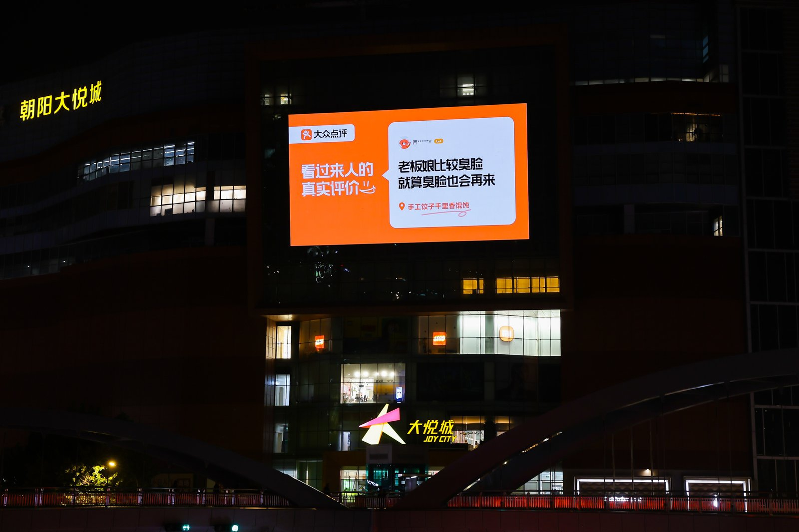 这个国庆朝悦被大众点评霸屏了!抬头看就是滚动着用户真实评价的大屏幕,对于吃过那家千里香馄饨的我来说,句句都是真实啊!