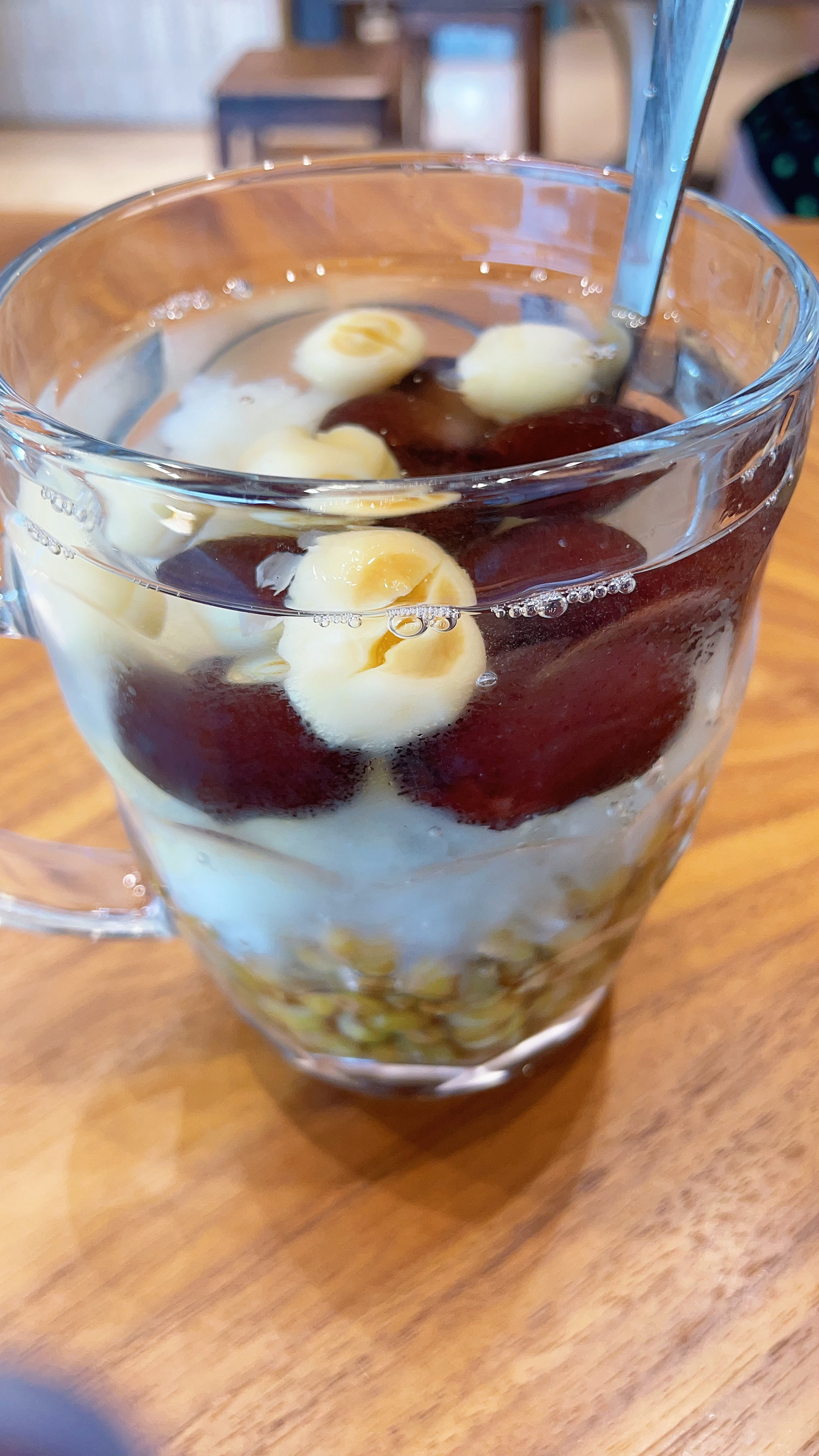 我老家代表性糖水八宝汤,一杯下去饭和饭后甜点都解决了。跟我小时候比,现在糖度都降低了,不那么甜。