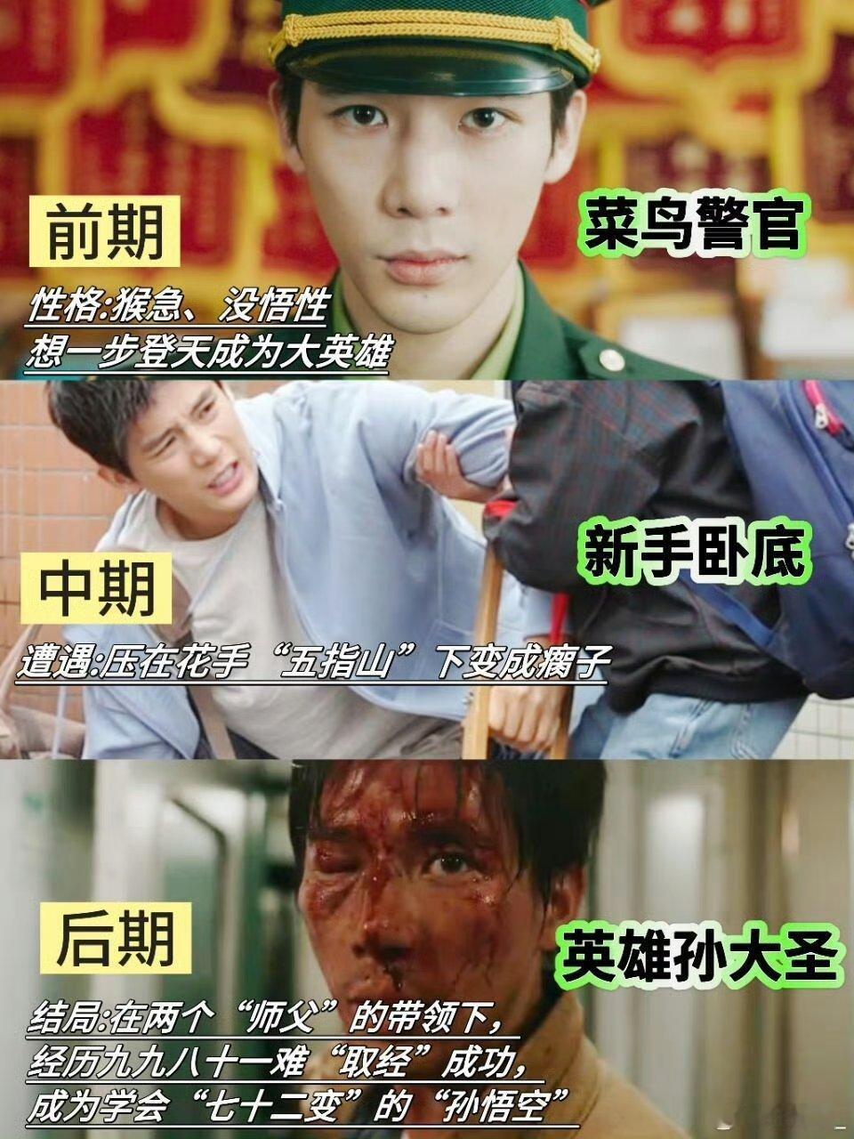 毕正明从齐天大圣到斗战胜佛的蜕变 《毕正明的证明》中,毕正明初为实习👮像“猴性”孙悟空,抢头功不知火车水深,遭小偷算计,活脱脱“小小弼马温还想翻天覆地”,将青涩冒失演得太真实。 ​​​