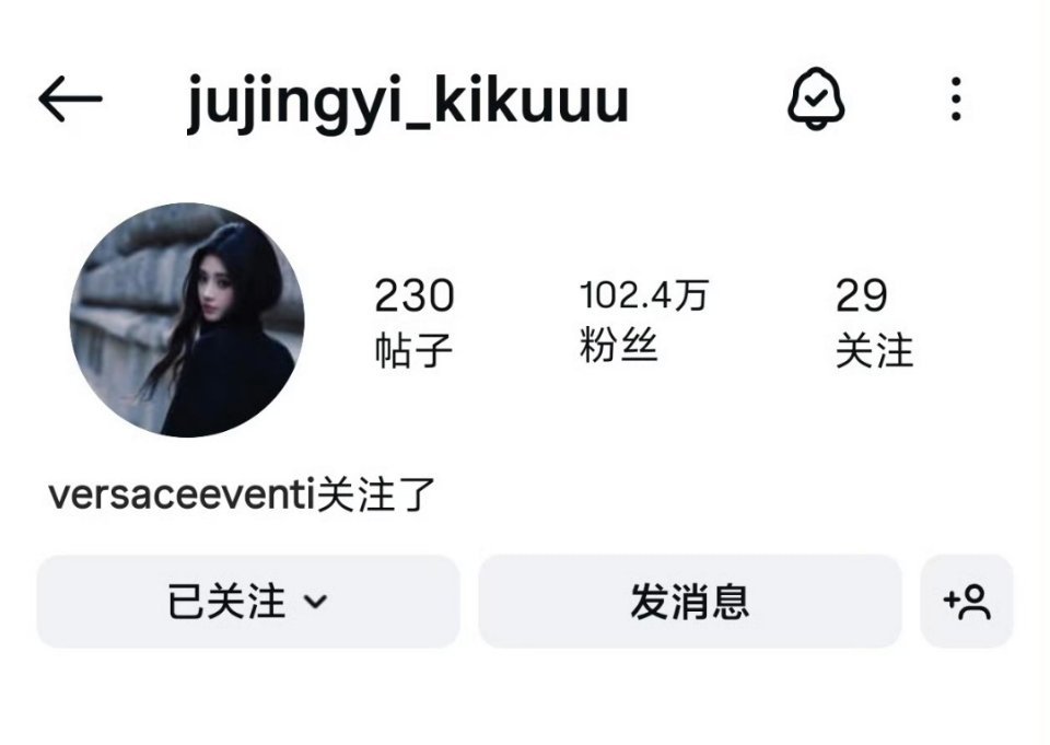 鞠婧祎ins粉丝破102w了,参加米兰前后涨粉24w+,这次米兰看秀全面出圈了