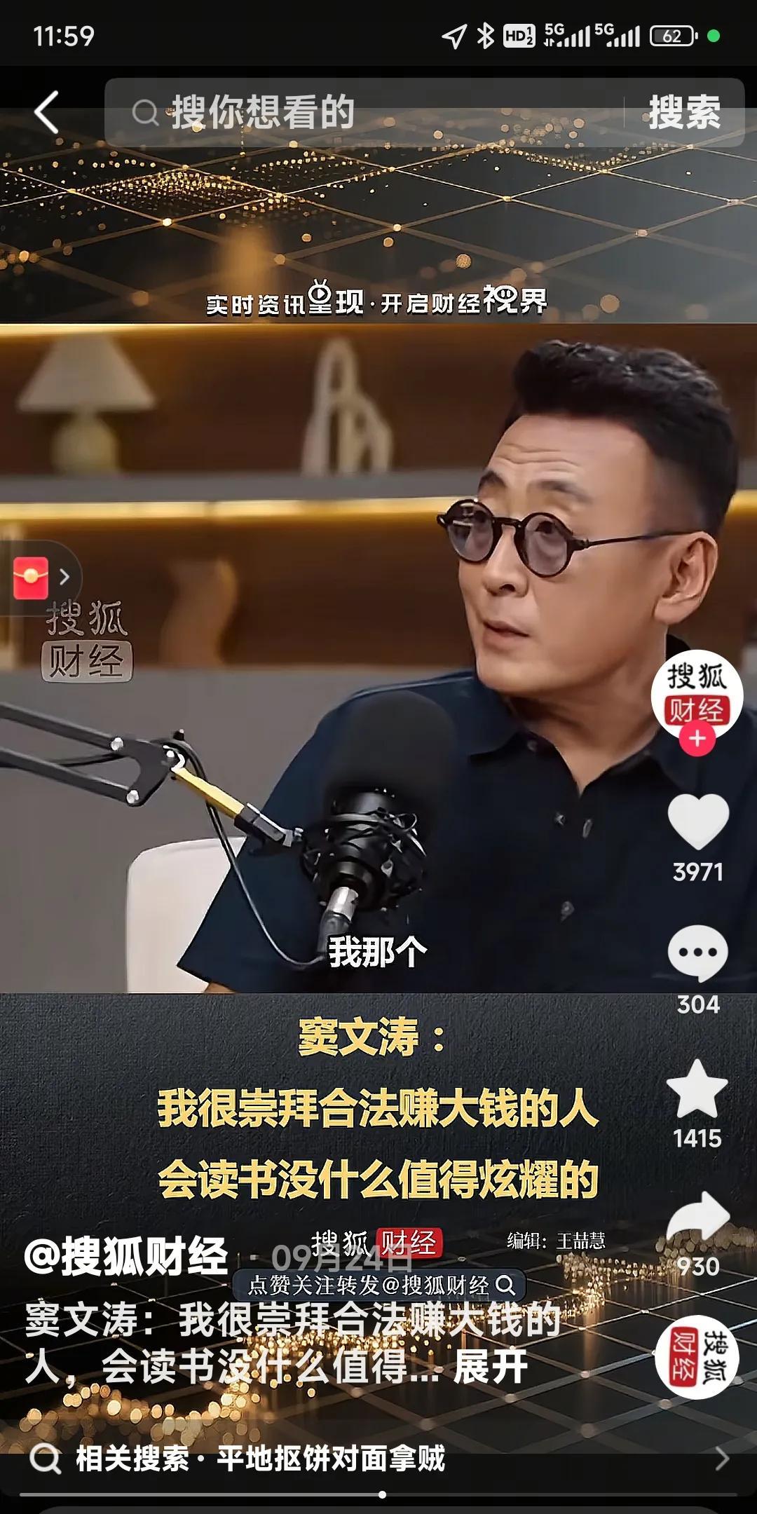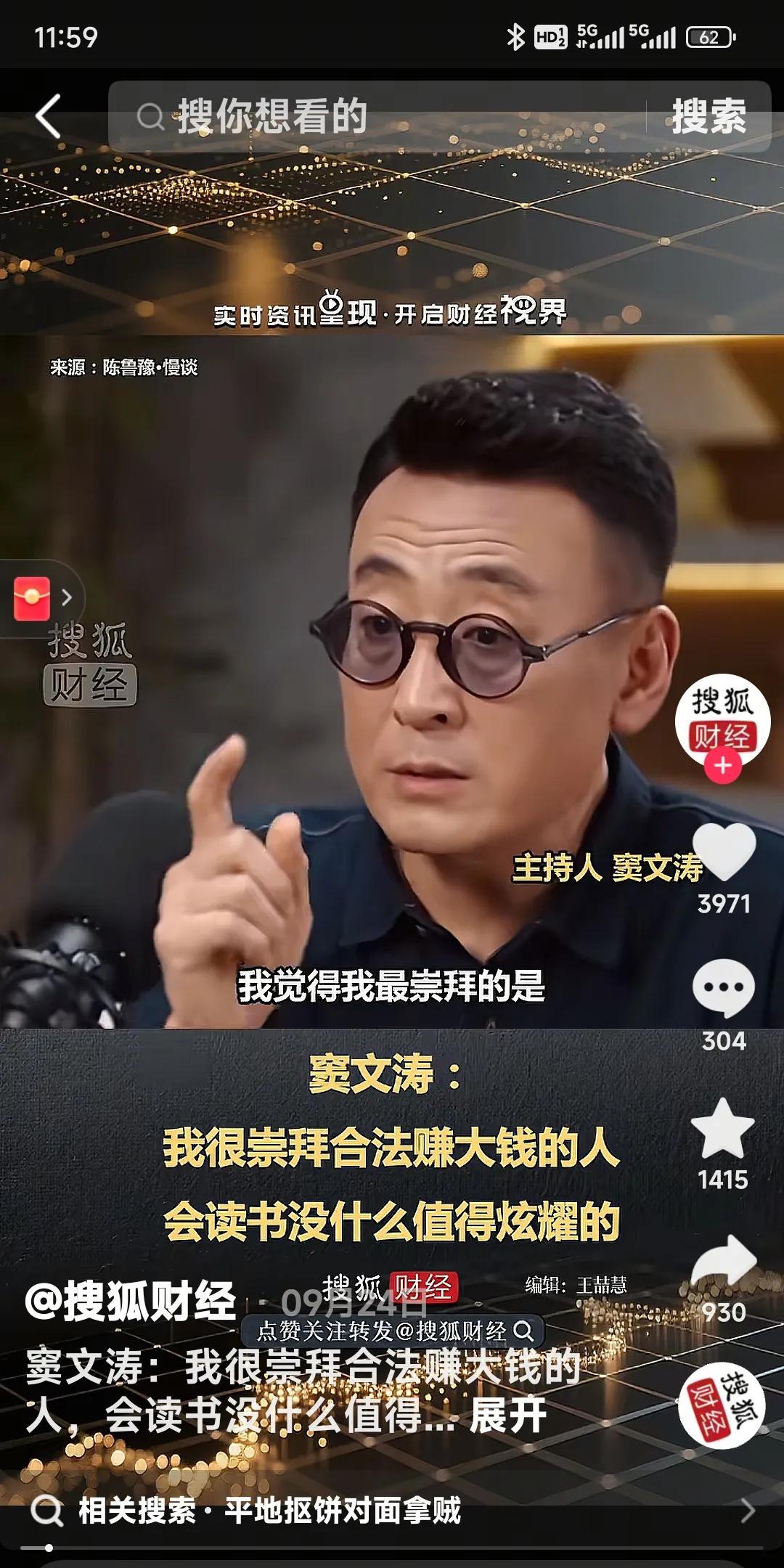 窦文涛说他羡慕合法赚大钱的。第一层潜台词,他鄙夷违法赚大钱的。 第二层潜台词,