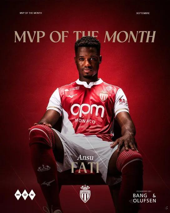3场4球,摩纳哥官方宣布法蒂当选9月队内最佳球员法蒂