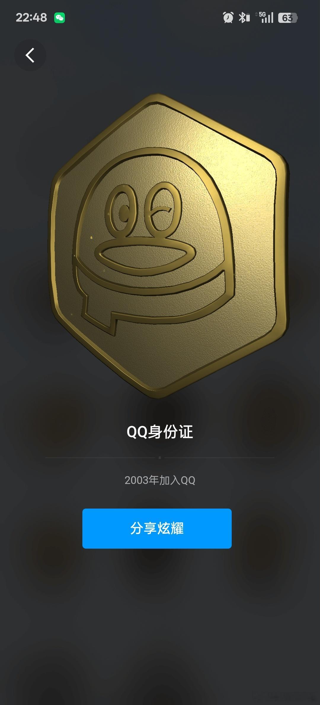 第一次知道还有QQ身份证啊,你是哪一年加入QQ的,还有比我更早的吗[并不简单]