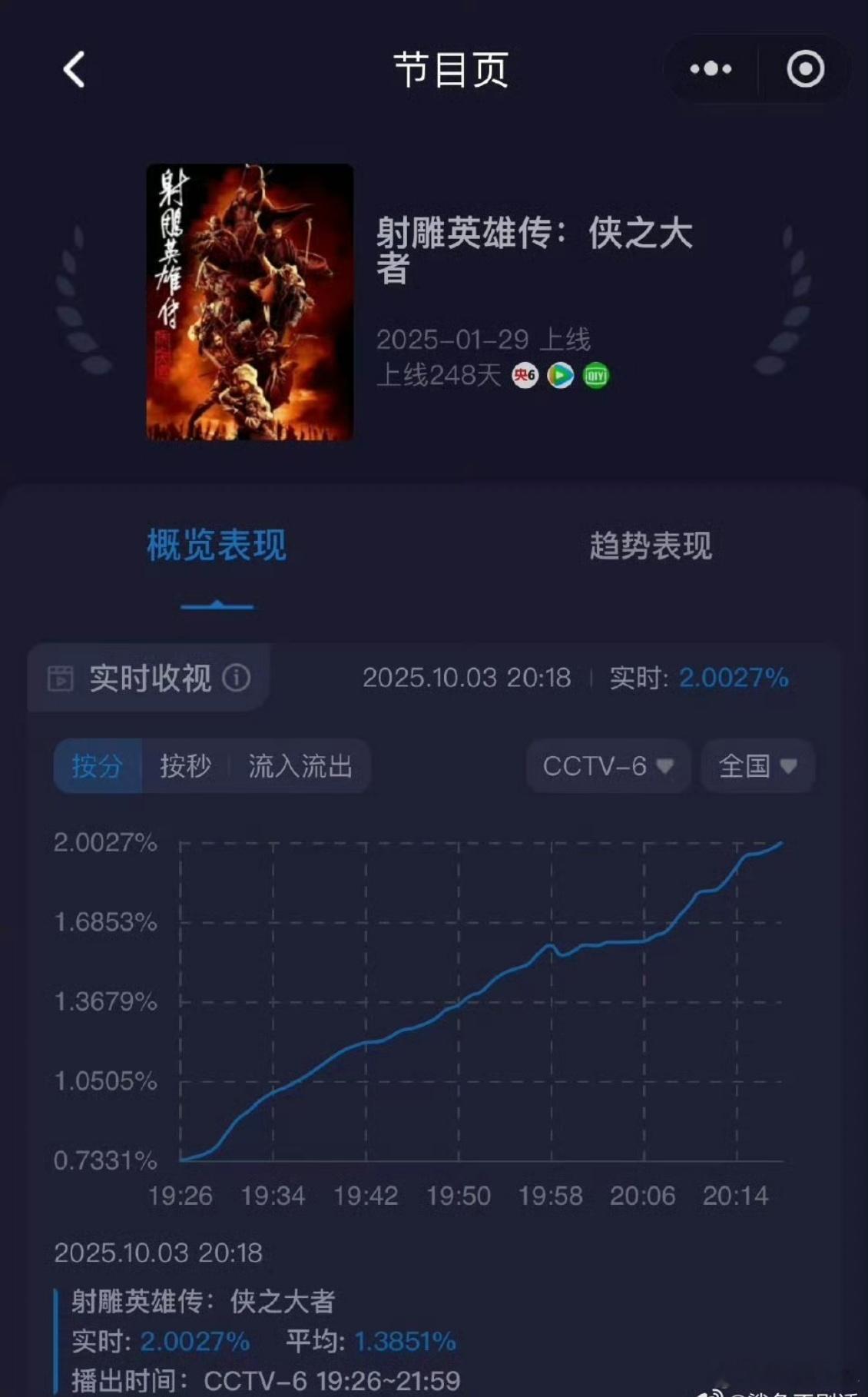 肖战射雕首次上星收视破2肖战射雕首次上星收视破2,路人盘真的太稳了吧