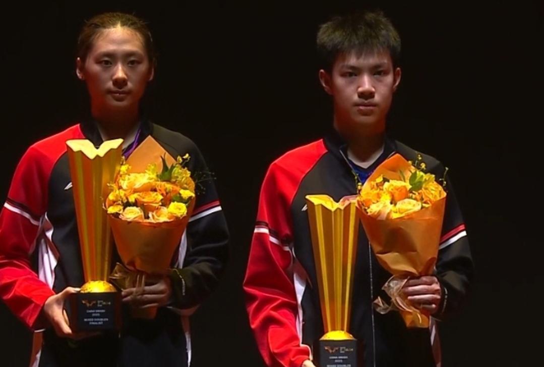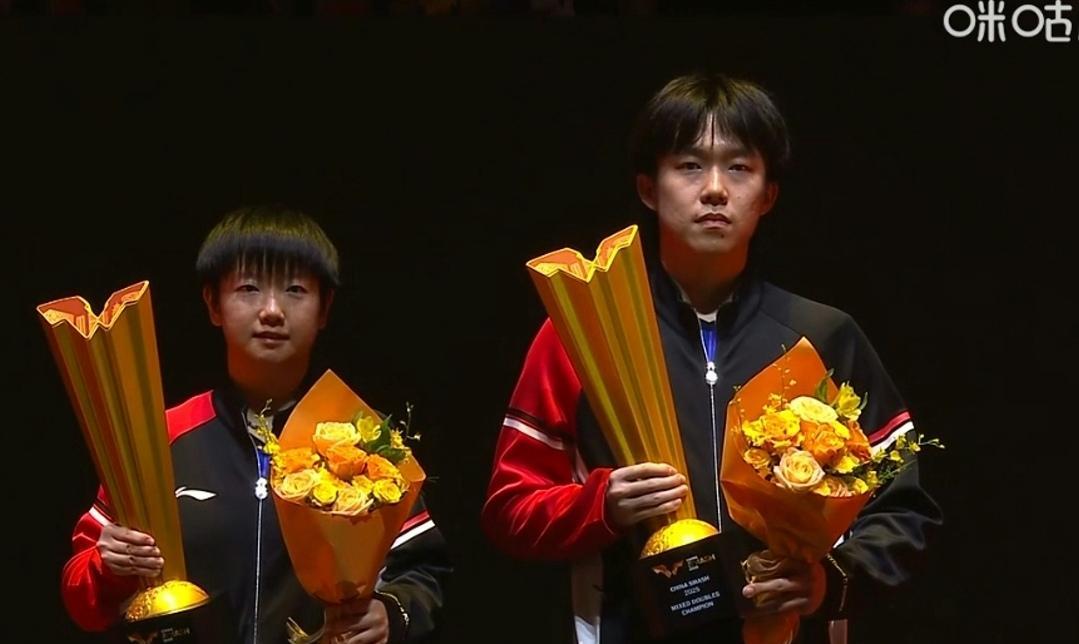 北京大满贯混双决赛,结果可以预测,过程无比精彩,虽然面对的是实力第一的混双组合孙颖莎和王楚钦,小将陈熠和黄有政完全没有放弃,这份拼搏到底的精神值得所有年轻小将学习。 孙颖莎和王楚钦八年的混双配合,默契程度大家有目共睹,双世界第一,个人实力都是一流,而且经过巴黎奥运会和三届世乒赛,以及多次大满贯赛事的混双冠军的加持。 因为经过一整个巴黎奥运周期的专业混双训练,可以说王楚钦和孙颖莎已经可以破解任何混双组合的挑战,黄有政、陈熠虽然是配对不久的混双组合,但是北京大满贯的表现依然非常抢眼,黄有政今年的单打成绩虽然不如人意,但是陈熠今年成长的非常快,而且今天晚上陈熠针对王楚钦的发球确实也获得了不错的比分,第二局黄有政、陈熠在2:9落后的情况下也没有放弃,努力一分一分的追分到9:10,虽然是大比分0:3落后,但是小将黄有政和陈熠在赛场上的追分精神还是值得肯定,假以时日相信黄有政和陈熠的混双组合一样可以惊艳赛场。 #晒图笔记大赛#