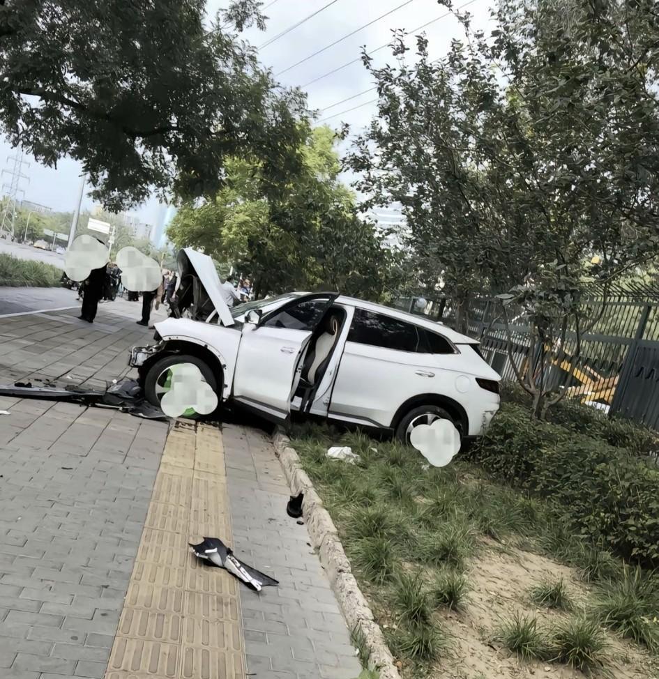 与陈震对撞的车主,鼻梁被干骨折了,后面还有一个人受伤,走近一看,这个白车的气囊居然没有弹出来,都撞这么严重了,气囊不开,鼻梁能不干骨折嘛。 当时路边还有两个人骑共享单车,白车撞过来的时候,差点撞到前面那个小黄车,陈震应该庆幸没有撞到路边无辜的路人。
