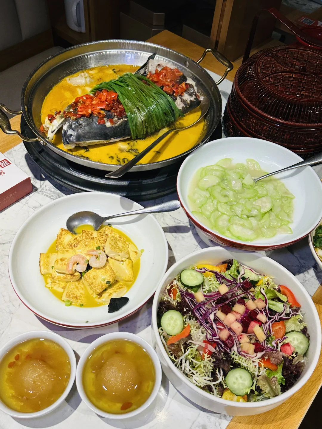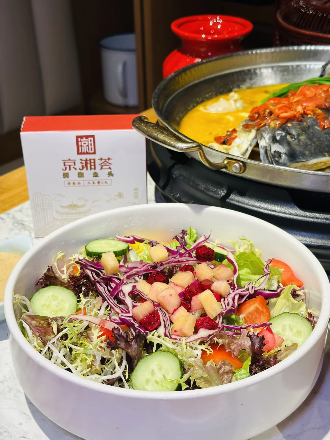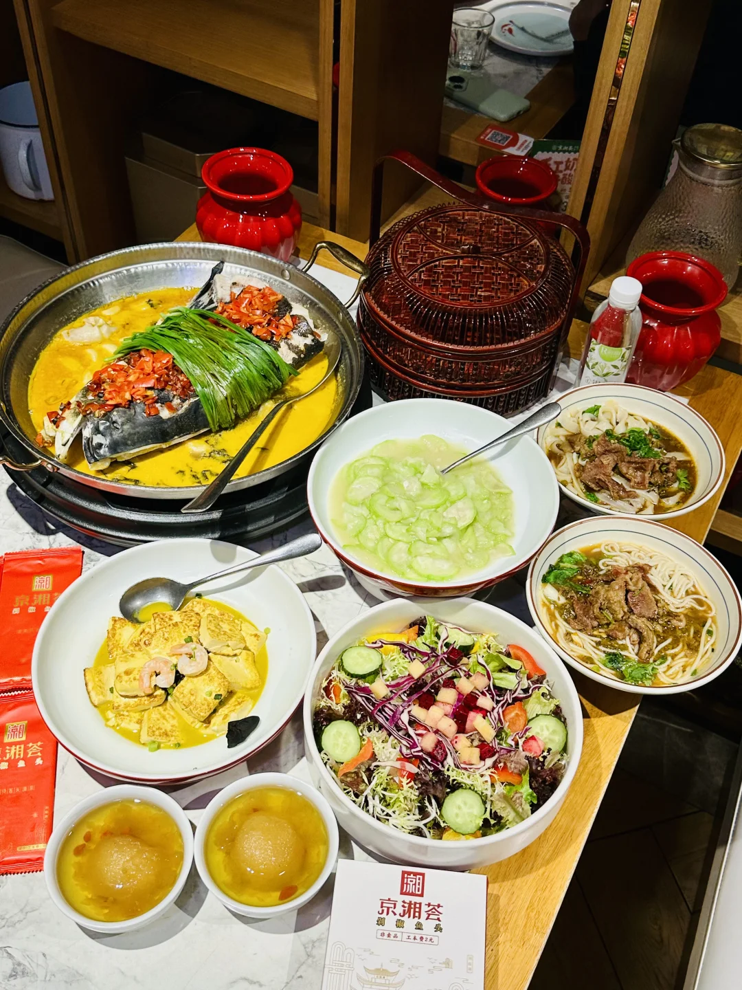谁能想到平均一天不到二块钱,就能吃上热气腾腾的早餐了,航天桥这家湘菜馆,从正餐到早餐都让我疯狂种草🌿 🍲古坛剁椒蒸活鱼头(半只) 这道镇店之宝一上桌就把我香晕!剁椒铺得满满当当,大鱼头🐟鲜嫩入味,每一口都是剁椒的香辣和鱼肉的鲜甜碰撞💥吃之前拌一拌,连汤汁泡饭都能炫两碗!😋 🧈鸡汤虾仁煎豆腐 豆腐煎得外焦里嫩,吸饱了鸡汤的鲜味,还有Q弹虾仁加持,清淡又入味,吃完鱼头来一口,绝绝子👍 🍐京味烤梨 吃完辣菜,来一份烤梨🍐太治愈了!炖得软烂的梨和银耳,加入冰糖后,甜度刚好,润肺又解腻😋太适合秋天🍃了 🍜老长沙红烧牛腩米粉 牛腩🥩炖得软烂入味,米粉吸饱了汤汁,嗦一口超满足!而且现在还有49元早餐月卡,30天畅吃这碗牛腩米粉+6种凉菜畅吃,打工人早餐有着落了!😍 餐厅旁边就是玉渊潭公园,逛完公园来一顿湘菜,完美😍周末就该这样安排~ 餐厅明厨亮灶,承诺热菜都是现做现炒的,没有预制菜,放心吃就行了,你还在等什么?赶紧冲!👍 🏠店名:京湘荟·剁椒鱼头(航天桥店) 📍地址:海淀区阜成路40号裕龙裕骊酒店1层东北侧