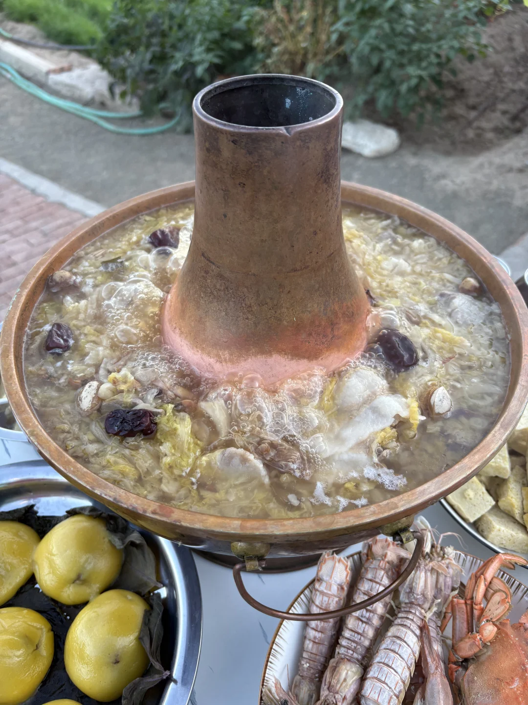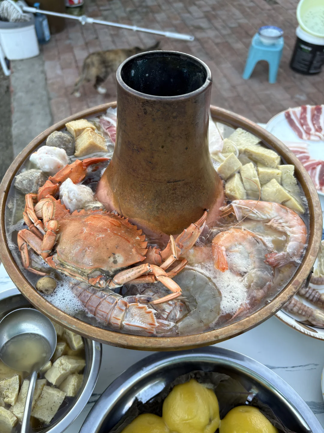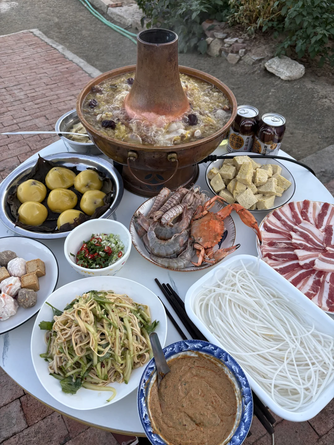 秋高气爽的天气来一锅铜火锅酸菜吃吃吧