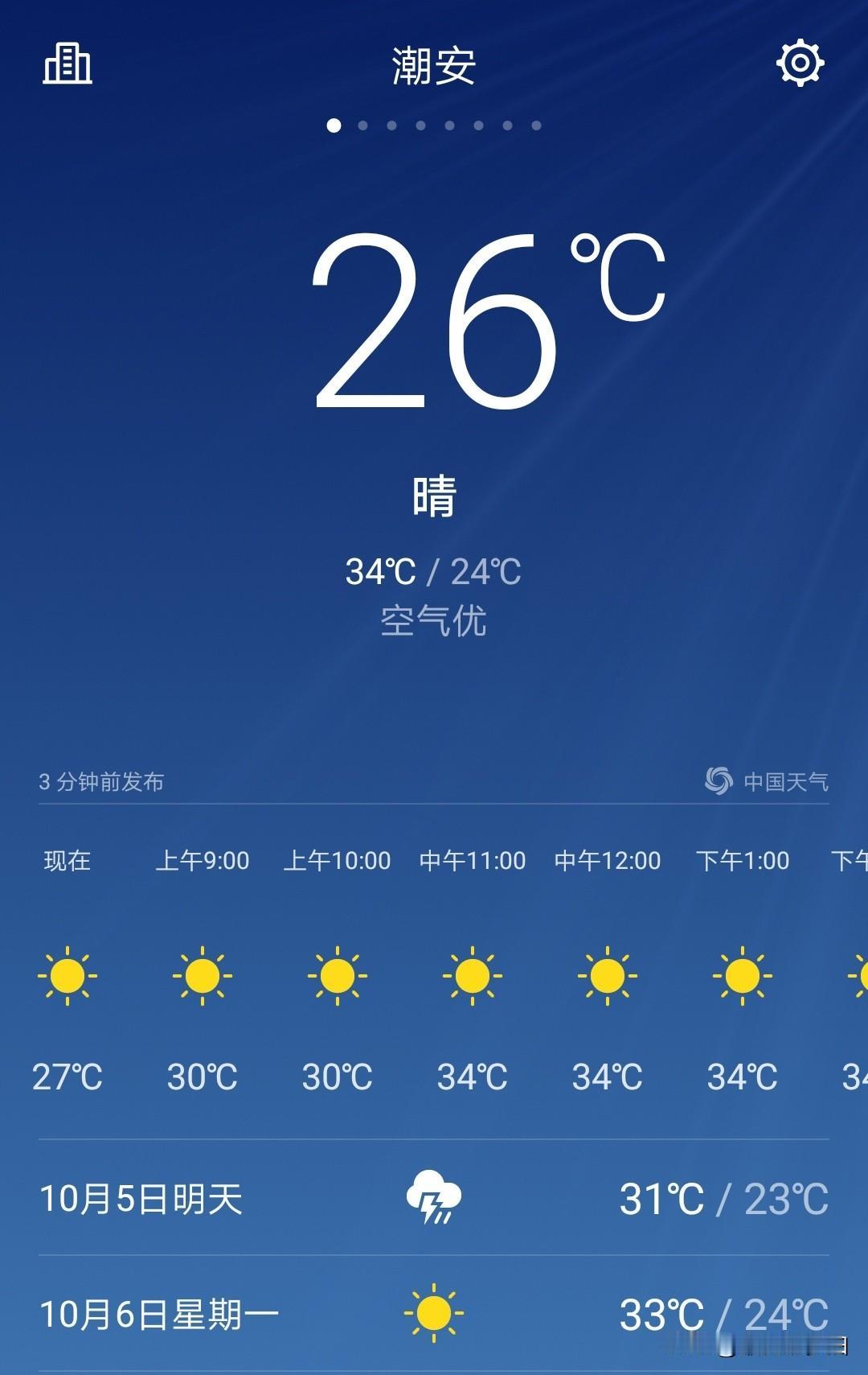 台风麦德姆4日起影响广东! 10月4日白天, 我省大部晴到多云; 4日夜间~5日夜间, “麦德姆”给珠江口以西沿海市县和海面带来严重风雨影响。 今天(4日)白天, 广东持续开启晴热模式, 依旧是大太阳暴晒, 夜间风雨至, 白天防晒夜里防风雨! 今天(4日), 潮州喜提一个多云转雷阵雨天气, 气温24~34℃, 此刻气温26℃。 看看今天的天空, 依然是烈日当空照, 依然是火辣辣的一天! 外出游玩的小伙伴们! 防晒防暑措施仍需做好。 风雨即将来袭, 得好好珍惜这么晴好的天气, 热是热了点, 但还是想给个好评! 如此天气! 元芳,你怎么看? [捂脸][捂脸][捂脸][捂脸][捂脸][捂脸][捂脸][捂脸]