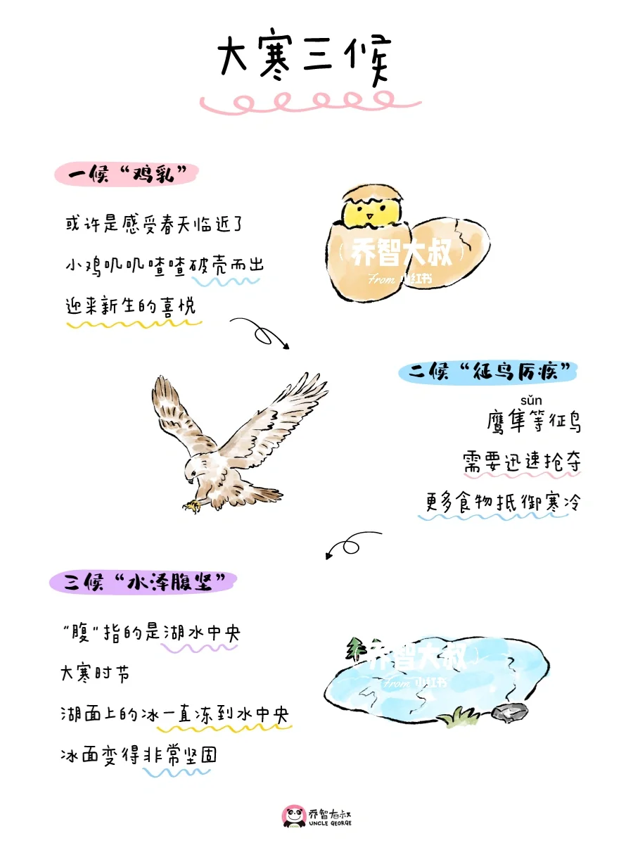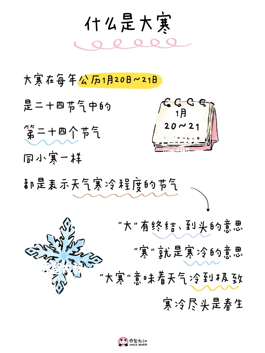 春雨惊春清谷天🍃 夏满芒夏暑相连 秋处露秋寒霜降🌾 冬雪雪冬小大寒 ❄️ 大寒是二十四节气中最后一个节气 大寒之后,年就近了,团圆也近了[鞭炮R] 跟着大叔一起了解大寒节气吧