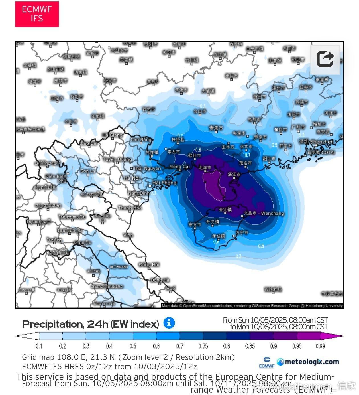 今天晚上开始,海南东部以及广东西南部沿海降雨会发展增多。明天到后天早晨,海南岛,广东西南部,广西南部有暴雨,部分地区大暴雨。后天强降雨转移到广西西部和云南东南部。明后两天,上述地区降雨具有极端性,可能接近或打破10月单日降水量纪录。