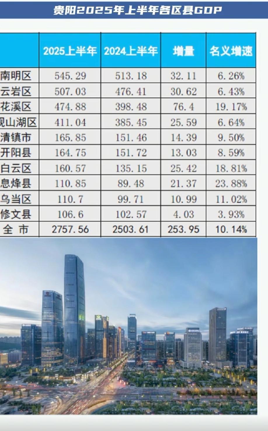 2025年上半年贵阳各区县市经济发展水平情况,贵阳上半年各区县市经济基本上都能够保持正增长,可见贵阳上半年各区县市经济发展表现还是可以的,相信下半年贵阳各区县市经济将会继续保持正增长,今年贵阳各区县市经济将会发展的更加强大。