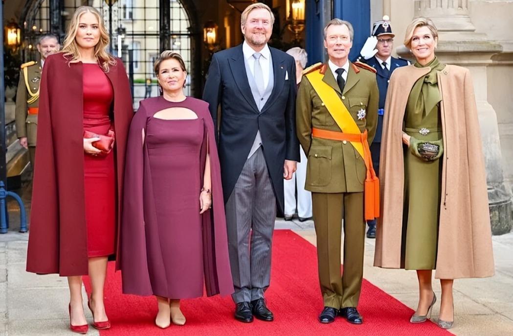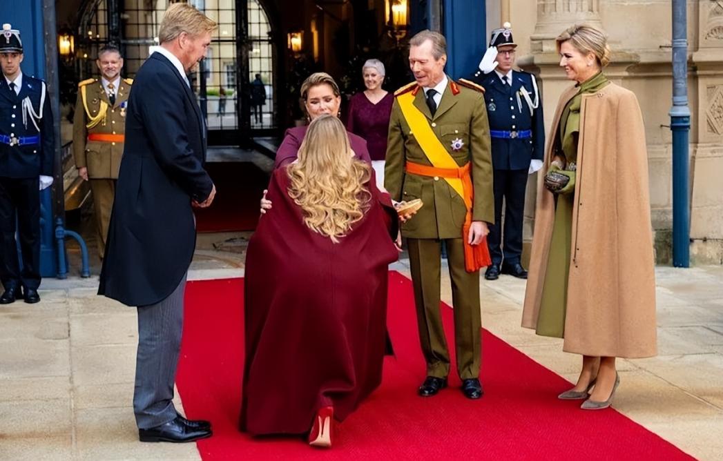 荷兰女王储阿玛莉亚向彼时还是大公夫人的特雷莎行屈膝礼,背影照美翻了!她是荷兰未来女王,身份地位尊贵,不过她还没有继承王位,并不是女王,也需要行屈膝礼。 10月3日她到卢森堡参加卢森堡大公的退位仪式与新大公的继位典礼,见到还是大公夫人的特雷莎屈膝行礼,摄影师拍到了女王储的背影,一头波浪卷发自然垂落在背上,美极了! 行礼后就是合影环节,没想到荷兰女王储的个头瞩目,居然比特雷莎高出那么多,还有穿着斗篷披风的造型也加分,尽显准女王气场。