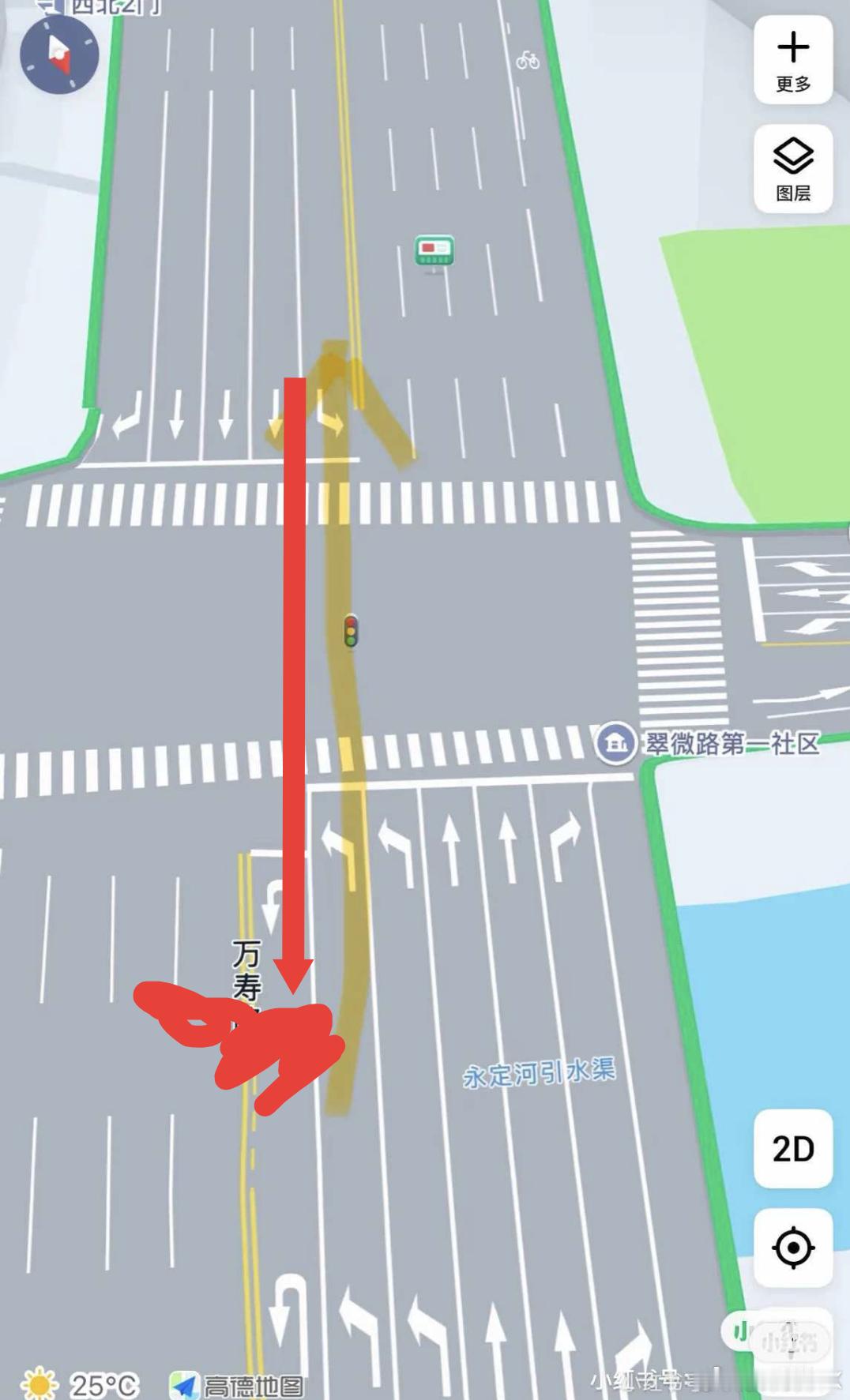 北向直行车道对面是掉头车道