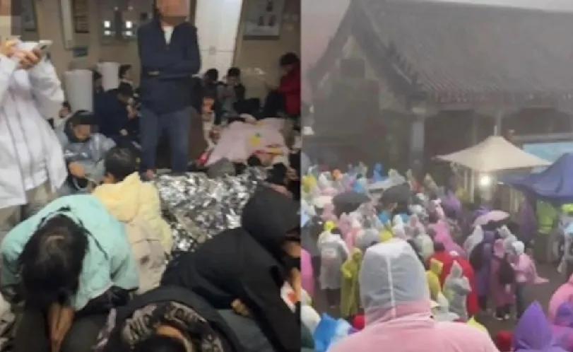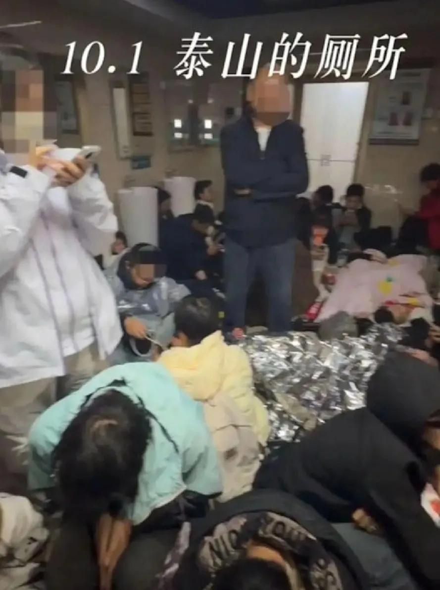国庆假期本是游山玩水的好时候,可登泰山的游客却遭遇了大麻烦。10月1日夜间至2日白天,泰山突降暴雨还伴有6级阵风,山顶气温接近0℃。尽管提前预警,游客量仍达峰值,索道因大风停运,游客只能徒步下山,山路湿滑很危险。 景区免费避雨点容量有限,大量游客只能挤入公厕,部分厕所“无落脚之地”。山上酒店价格高且大多订满,不少宾馆和饭店提供座椅过夜,收费60 - 100元。有宾馆推出99元坐席,能享受泡面、热水、充电和无线网等服务。去泰山游玩真得提前关注天气,不然就只能像这次的游客一样狼狈啦。
